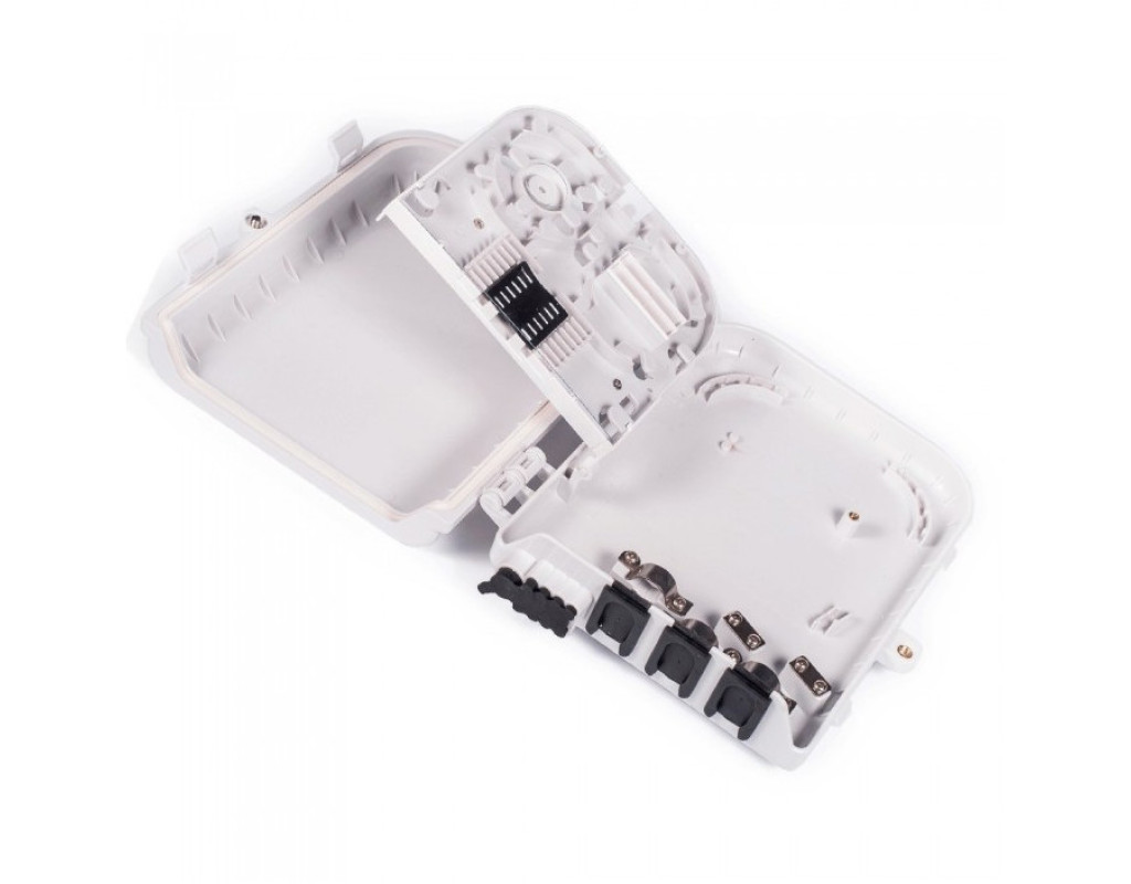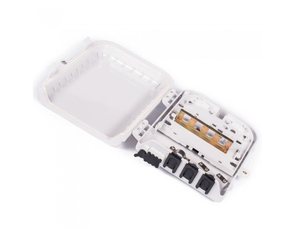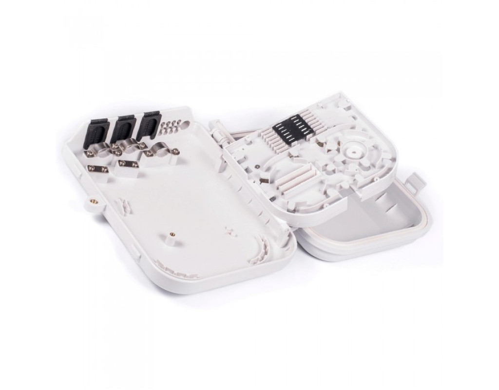 | Кабельні вводи/виводи: 2 (1)/6 Гумові наскрізні кабельні вводи для непрорезавшійся кабелю - 2шт. (резервний прохідний - 1шт.) Вихід для абонентських кабелів (патч - кордів) Ø3мм. (3х2мм.) - 6шт., здвоєних (овальних) Максимальна кількість зварювань: 24 Двостороння сплайс-касета ном. ємністю 6 волокон (макс. 12) для укладання гільз і запасу оптичних волокон. Місце для установки механічних з'єднувачів і корпусних дільників |