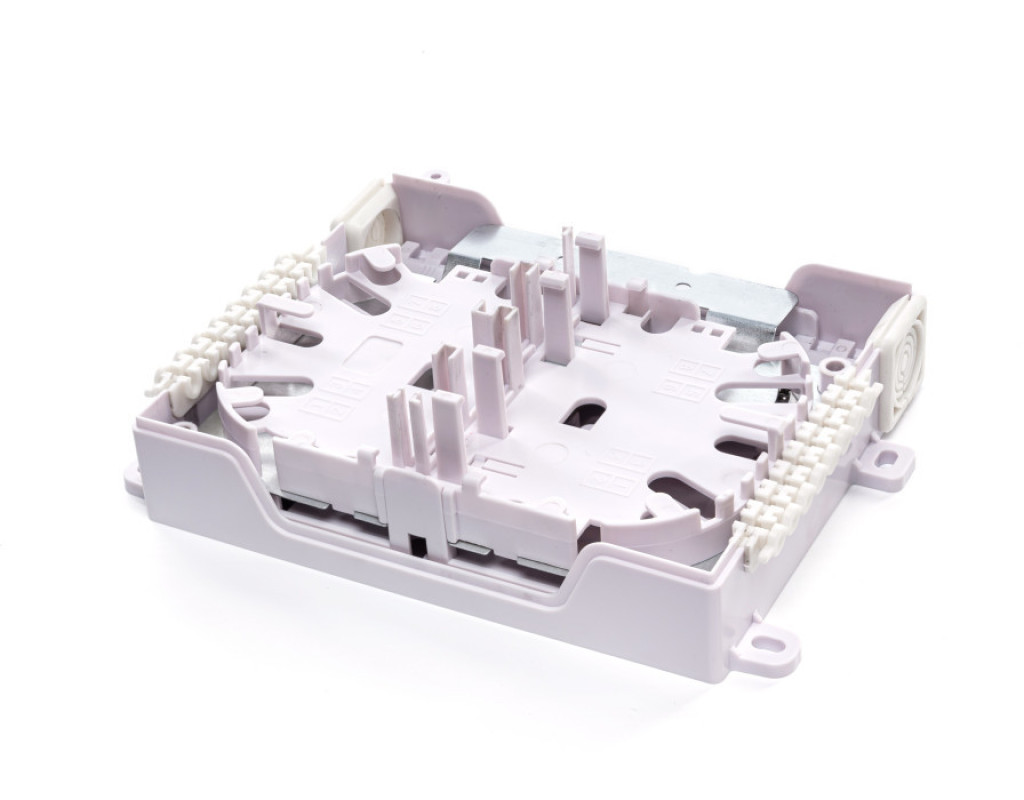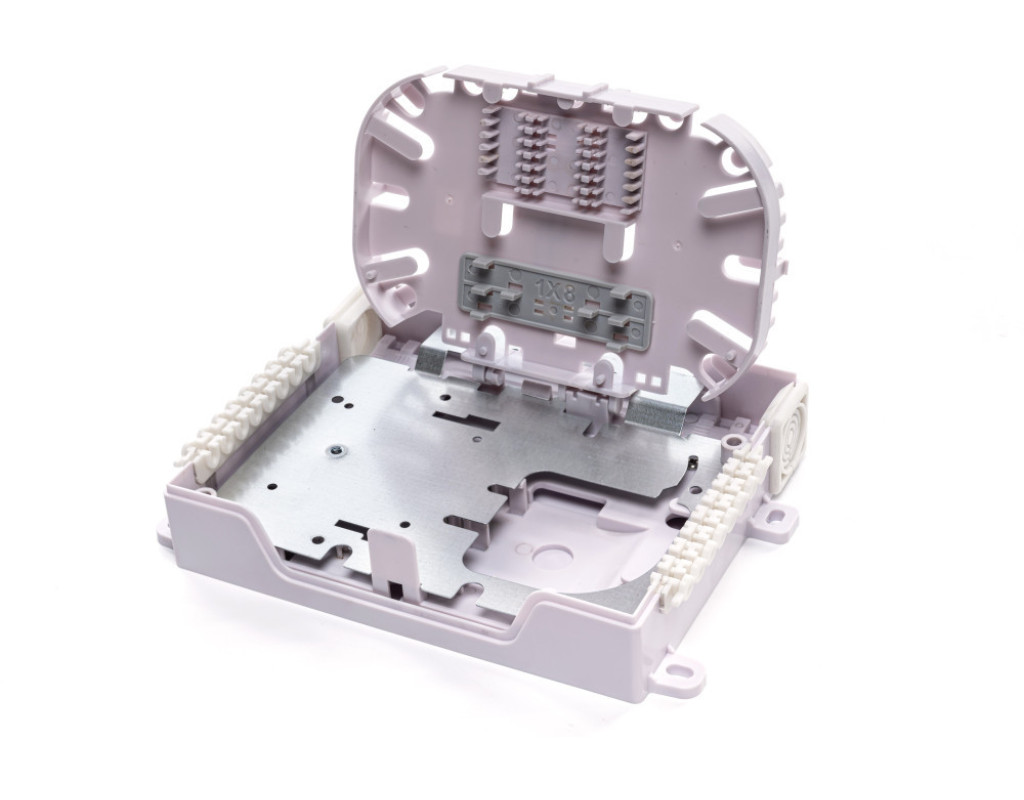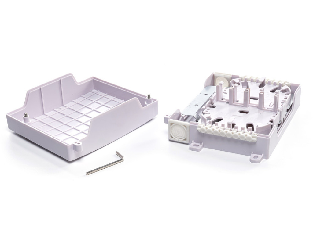 Предназначены для ответвления модуля с волокнами от межэтажного кабеля, сварки волокон межэтажного кабеля с пигтейлами, фиксации межэтажного кабеля, защиты места ответвления и сростков волокон, разъемного подключения до 8-и абонентских оптических патчкордов. Используются в PON сетях с каскадным сплиттерным делением по схемам 1х16---1х4 или 1х8---1х8. Имеют пылезащитный пластмассовый корпус с крышкой, внутри которого находится вставка со съемной поворотной кассетой. С внутренней стороны кассеты выкладывается запас волокон и размещаются ложементы для КДЗС, а с внешней стороны находятся гнезда для установки оптических адаптеров. Дополнительно на внутренней стороне кассеты установлен держатель для PLC делителя. Внутри корпуса находится вставка, на которой размещается запас волокон пигтейлов, ложементы для КДЗС и оптические адаптеры для подключения входных разъемов сплиттерных модулей. Зона монтажа ОВ закрывается металлической крышкой, к которой могут крепиться сплиттерные USM - модули 1х4 или 1х8. Съемная откидная монтажная панель обеспечивает удобство монтажа и эксплуатации. Отличаются компактными размерами и могут устанавливаться непосредственно в этажных кабельных нишах. |