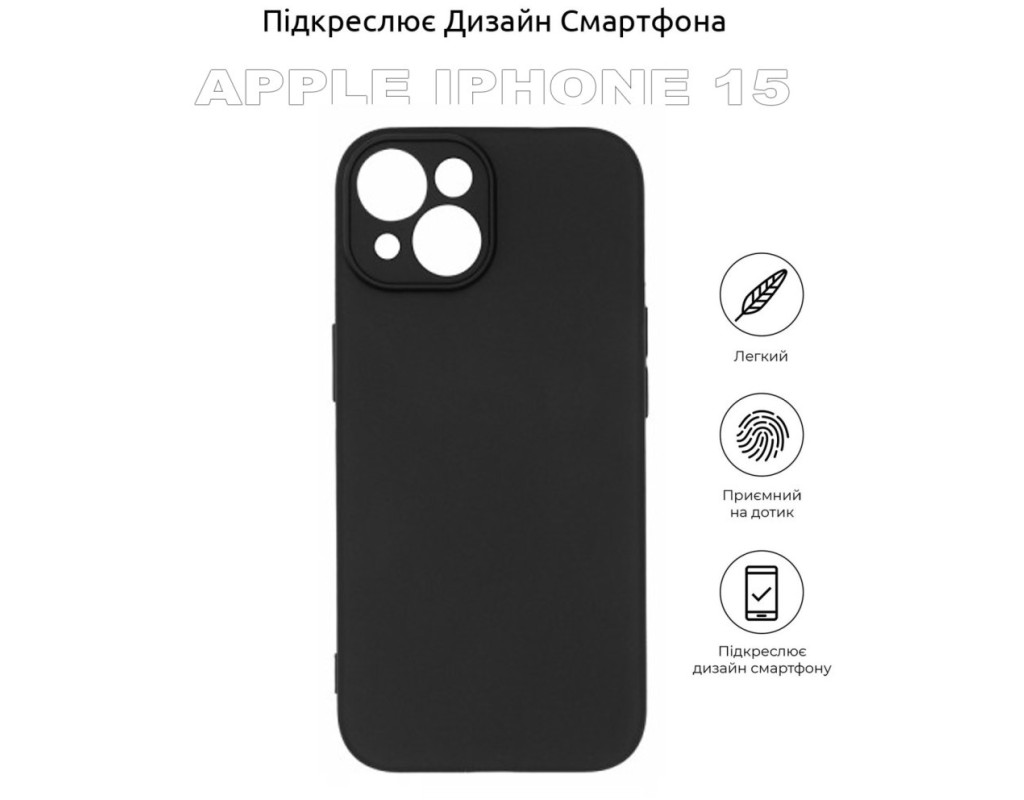 совместимость с моделями - Apple iPhone 15, Тип чехла для телефона - накладка, Назначение - модельный, Материал - силикон, Цвет - черный