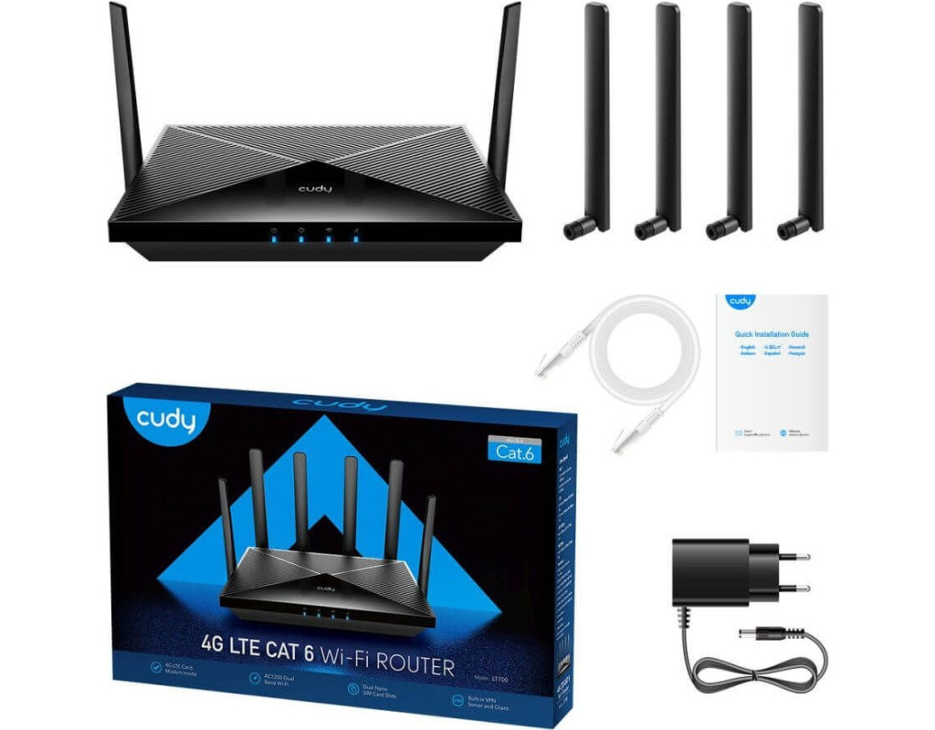 | Маршрутизатор Cudy LT700 – это мощное и многофункциональное устройство, которое обеспечивает стабильное и быстрое интернет-соединение для вашего дома или офиса. Оснащённый двухъядерным процессором с частотой 0.88 ГГц и 128 Мб оперативной памяти, этот маршрутизатор имеет высокую производительность и стабильность работы при обработке больших объёмов данных. Cudy LT700 поддерживает двухдиапазонный Wi-Fi, обеспечивая скорость передачи данных до 867 Мбит/с на частоте 5 ГГц и 300 Мбит/с на 2.4 ГГц. Благодаря стандартам Wi-Fi 802.11 b/g/a/n/ac, вы можете наслаждаться быстрым и надёжным беспроводным соединением на разных частотах. Устройство оборудовано шестью съёмными антеннами, которые обеспечивают мощный сигнал и расширяют зону покрытия вашей сети. Уникальное преимущество Cudy LT700 – это поддержка 4G LTE Cat.6, обеспечивающая скорость загрузки до 300 Мбит/с и отдачи до 50 Мбит/с, делая его идеальным решением для тех, кто проживает в районах со слабым проводным интернетом. Для обеспечения гибкости в настройке, маршрутизатор оснащён разъёмом для SIM-карты, что позволяет использовать мобильный интернет как основное или резервное соединение. Два разъёма для SIM-карт обеспечат бесперебойный интернет-доступ за счёт автоматического переключения между разными операторами связи. Устройство также поддерживает VPN функции через протоколы PPTP, L2TP, OpenVPN, WireGuard, IPSec, что позволяет защищать ваши онлайн-данные и обеспечивать конфиденциальность в сети. Кроме того, Cudy LT700 поддерживает MESH технологию, которая объединяет несколько маршрутизаторов или точек доступа в единую систему, гарантируя непрерывное Wi-Fi покрытие без "мертвых зон". Интерфейсы маршрутизатора включают 1x 10/100/1000BASE-T WAN/LAN-порт и 3x 10/100/1000BASE-T LAN порта, что значительно расширяет пропускную способность сети, позволяя передавать большие файлы быстро и эффективно. Съёмные антенны с разъёмами SMA дают возможность подключать внешние антенны для улучшения качества приёма сигнала в условиях слабого сигнала. Дополнительные полезные функции маршрутизатора включают поддержку динамического DNS, гостевой сети для повышения безопасности, а также удалённое управление. Благодаря поддержке CWMP-протоколов, Cudy LT700 позволяет удобно настраивать устройство и выполнять обновления программного обеспечения удаленно. Маршрутизатор Cudy LT700 – это разумный выбор для обеспечения качественной и надежной беспроводной связи в вашем доме или офисе, предлагая передовые технологии и беспрецедентную гибкость в настройке. |