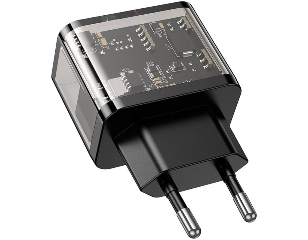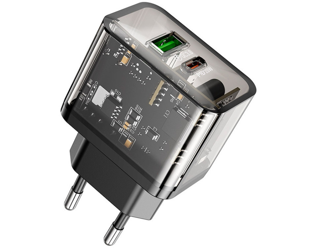 Тип - адаптер, Питание - сеть, Назначение - универсальное, для смартфона, тип выходного подключения - USB Type-C, USB, Max - 3 А, 20 Вт, количество USB портов - 1 x USB, 1 x USB Type C, быстрая зарядка - Power Delivery, Quick Charge 3.0, черный