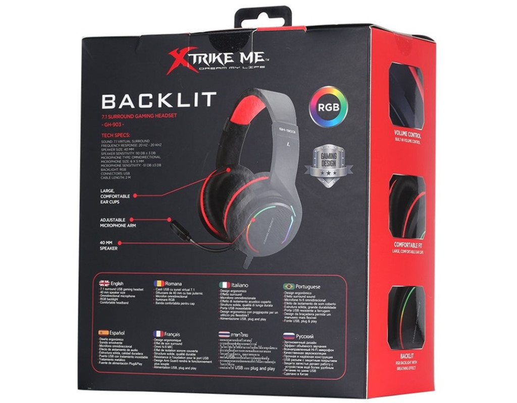 | Наушники Xtrike ME GH-903 RGB-LED Black (GH-903) – это воплощение современных технологий и геймерских амбиций, созданное для тех, кто требует исключительной производительности и комфорта. Эта игровая гарнитура является незаменимым инструментом для компьютерных энтузиастов, которые ценят качество звучания, удобство и надежность во время игры или работы. Эти геймерские наушники созданы для полного погружения в мир звука благодаря поддержке объемного звучания 7.1 Surround. Технология настраиваемого объемного звука позволяет четко определять направление источника звука, что делает их идеальным выбором для шутеров, стратегий или любых других игр, где важна каждая деталь. Кроме того, удобство использования обеспечивается через проводное подключение с использованием интерфейса USB Type-A, что делает Xtrike ME GH-903 отличным выбором для подключения как к стационарным компьютерам, так и к ноутбукам. Дизайн гарнитуры не менее впечатляющий – полноразмерная конструкция наушников позволяет полностью отдаться звукам игры или любимой музыки, изолируя от внешних шумов благодаря полузакрытому акустическому оформлению. Что особенно важно для длительных сессий, – регулируемое оголовье с мягкой подкладкой и амбушюры из качественного кожзаменителя обеспечивают максимальный комфорт без лишнего давления на уши. Отдельного внимания заслуживает встроенный микрофон выносной конструкции, который обеспечивает чистоту записи голоса во время командных игровых сессий или в процессе дистанционного общения с коллегами. Простое и быстрое регулирование звука расположено непосредственно на чашке наушников, что делает управление аудиопрофилем интуитивно понятным и удобным. Примечательно, что Xtrike ME GH-903 также привлекает внимание своим стильным оформлением – элегантный черный цвет с элементами RGB-LED подсветки выглядит впечатляюще и добавит индивидуальности вашей игровой зоне. Помимо впечатляющего звукового опыта, вес гарнитуры всего 330 г, что делает её удобной для длительного ношения. С длиной шнура 2 м, вы получаете необходимую мобильность, которая позволит комфортно двигаться на рабочем месте без ограничений. Наушники Xtrike ME GH-903 RGB-LED Black – это идеальное сочетание технологий, стильного дизайна и функциональных возможностей, которое удовлетворит любого пользователя, принося удовольствие от каждой минуты, проведенной с ними. |