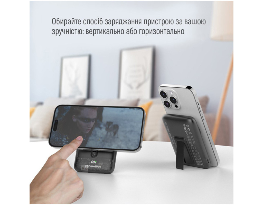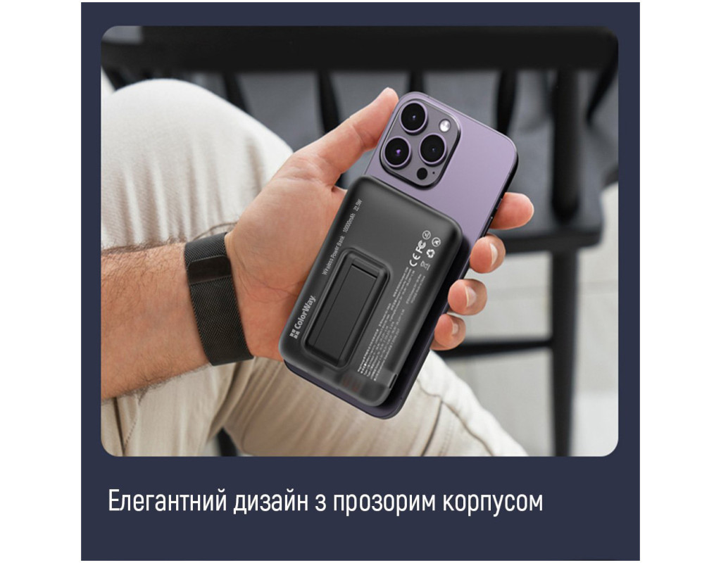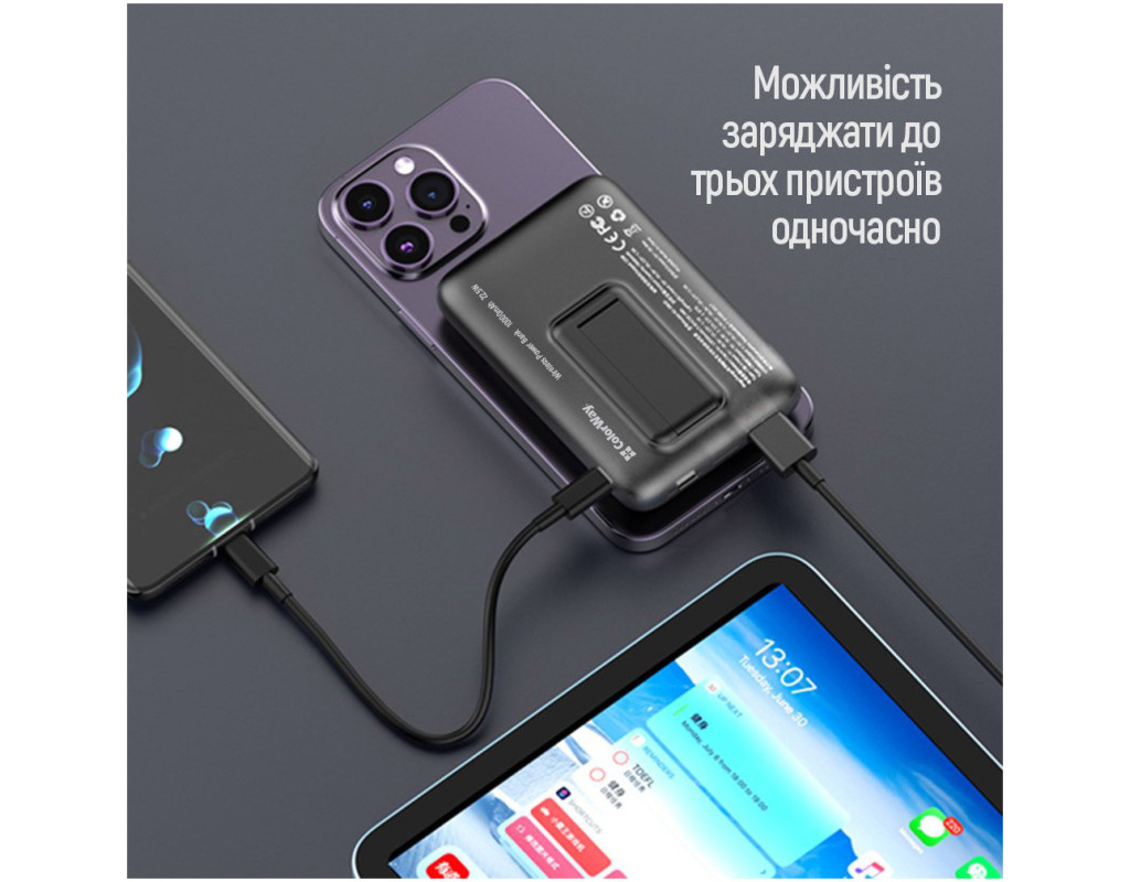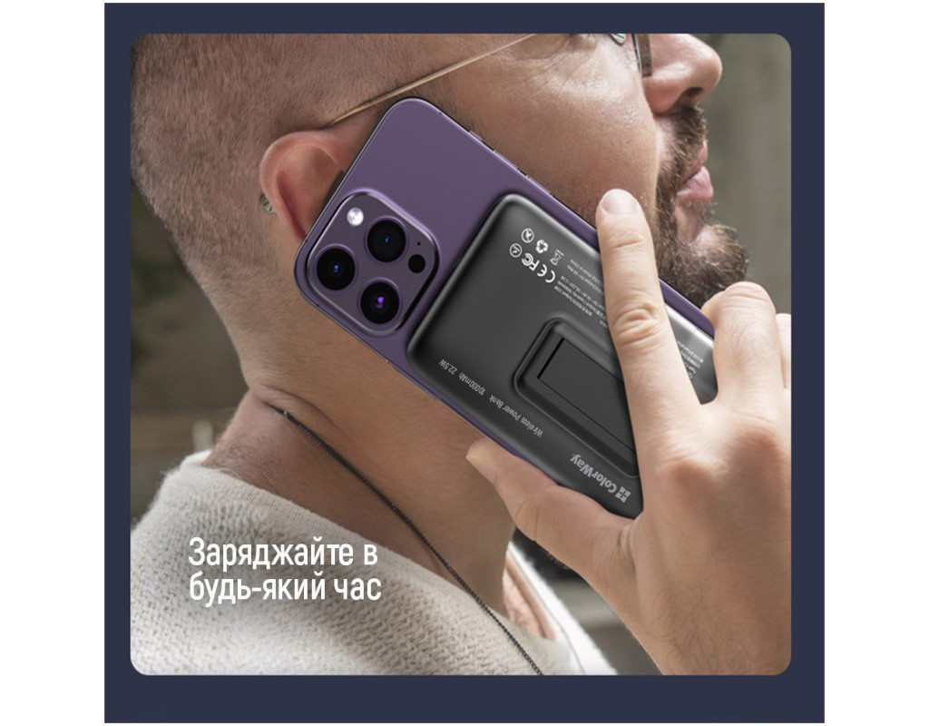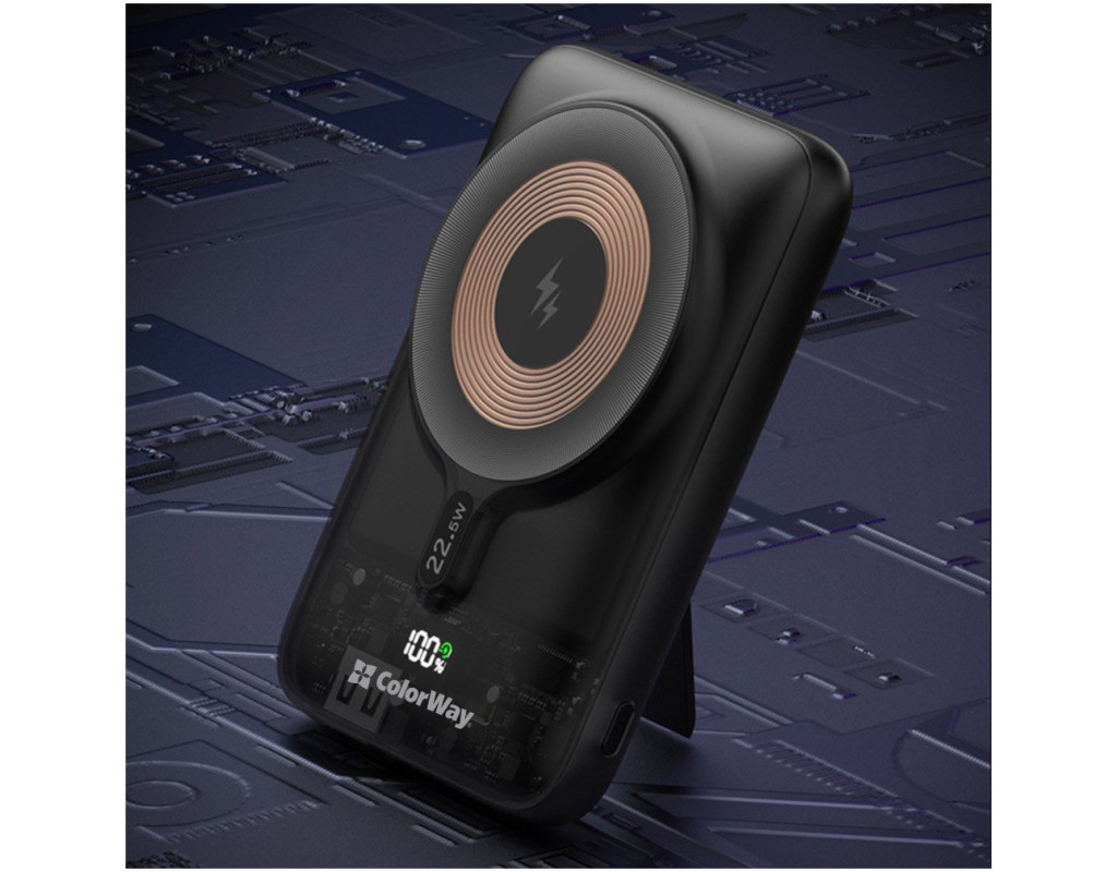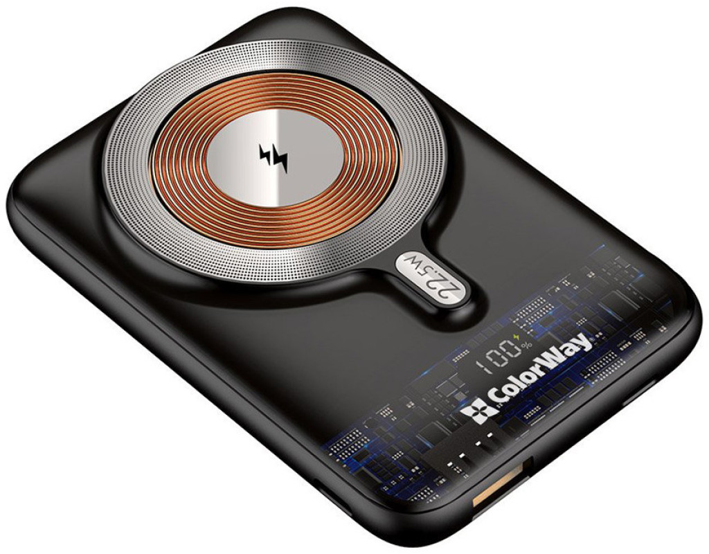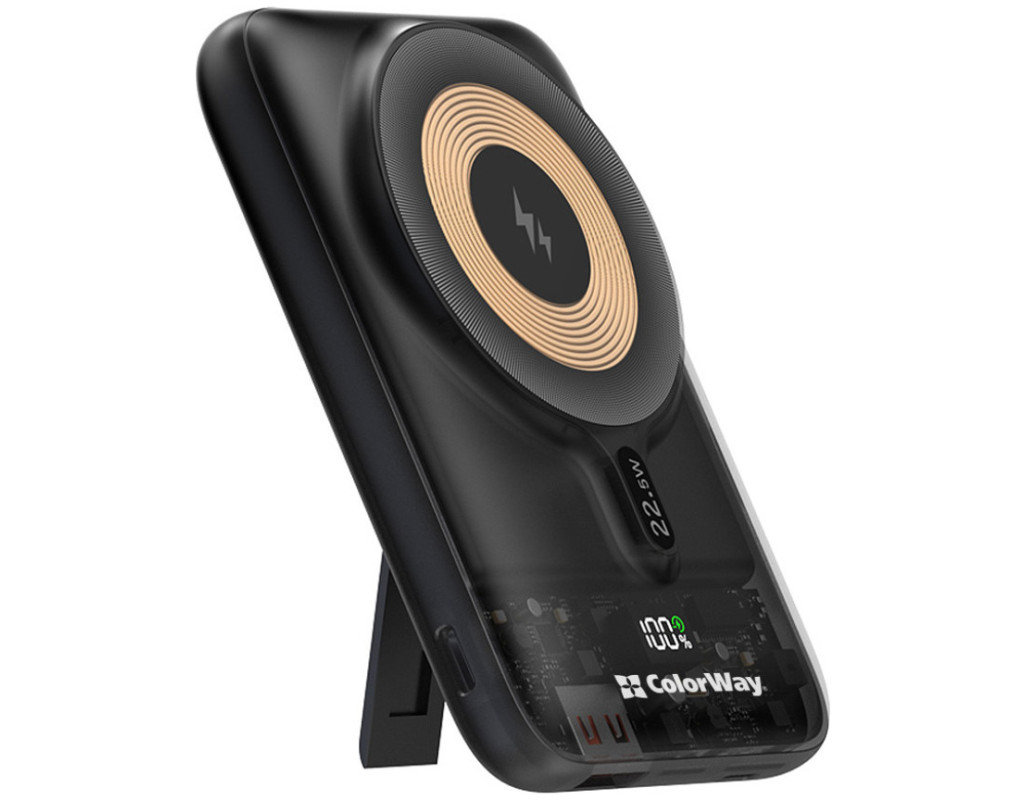 Power Bank MagSafe ColorWay - это универсальный, компактный мобильный аккумулятор с беспроводной зарядкой QI, который способен заряжать практически все устройства, поддерживающие зарядку через USB. Встроенные мощные неодимовые магниты обеспечивают надежное крепление телефона. Интегрированная подставка и поддержка сквозной зарядки (до 15 Вт) позволяют использовать Power Bank в качестве настольного зарядного устройства. Защита от перенапряжения, перегрузки и перегрева обеспечивает безопасность использования. LED-дисплей отображает текущий уровень заряда аккумулятора. |