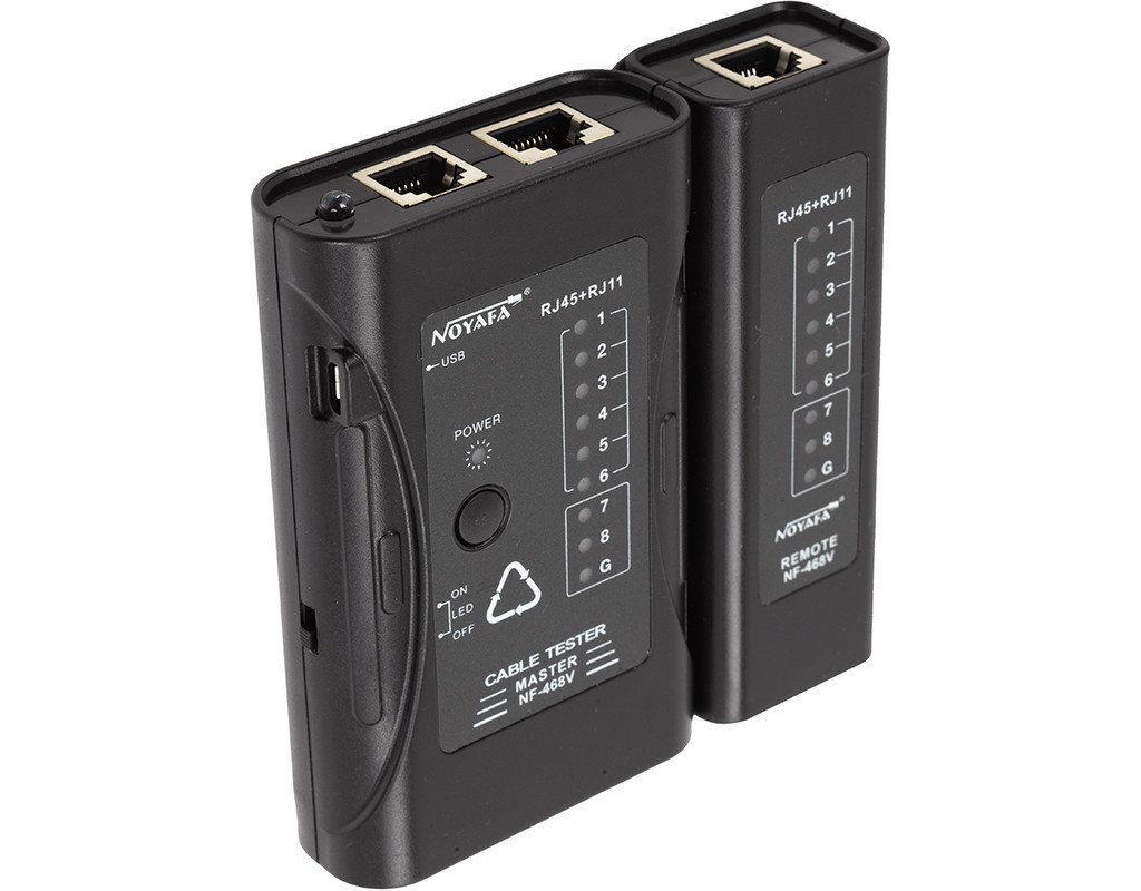 Тип пристрою: точне вимірювання. Перевірені кабелі: RJ45, RJ11, RJ12, CAT5, CAT6, CAT7. Батарея живлення: 6R22, 9В (не входить у комплект), USB-зарядка від повербанку. Виявляємі дефекти: обрив дроту, несправність, коротке замикання, неправильне розведення, розрив ланцюга, пересічена послідовність. Тестовий режим: швидке сканування/повільне сканування/ручний, покроковий. Світлодіодне освітлення, зручне для роботи у темряві. Світлодіодні індикатори кабелів, що легко читаються: 1, 2, 3, 4, 5, 6, 7, 8 і заземлення.
