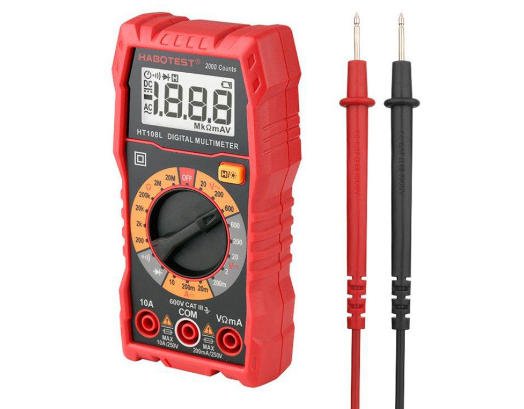 Мультиметр HABOTEST DC600В/10A, AC600В позволяет измерять: постоянный ток, постоянное напряжение, переменное напряжение, сопротивление, проверять диоды и непрерывность цепи. С подсветкой дисплея, предупреждением о низком заряде батареи. Подставка на задней стороне корпуса позволяет расположить прибор для лучшей видимости показаний. Автоматическое отключение для экономии заряда батареи. Дисплей на 2000 отсчетов. Компактный, маленький и легкий. Эргономичная форма, удобно держать в руке. В комплекте с тестовыми проводами. Батареи не включены. |