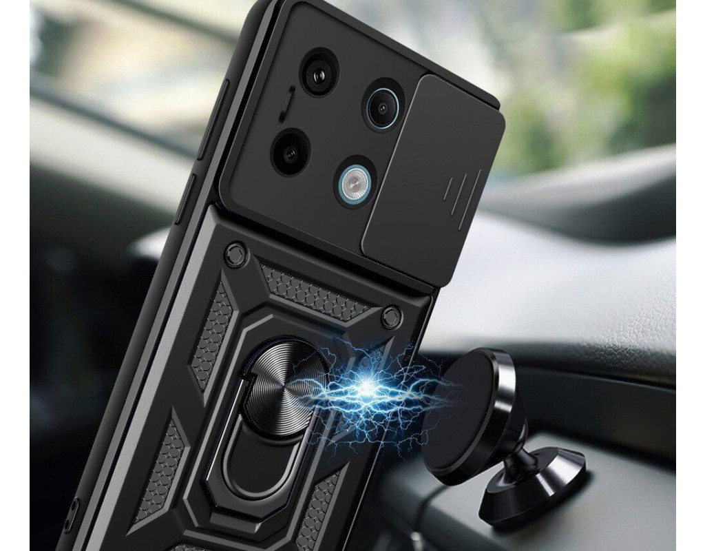 Гибкая силиконовая панель имеет жесткий металлизированный корпус и подставку для пальца. Чехол способен выдержать даже сильные ушибы и царапины. Встроенный регулируемый кронштейн для кольца: вращающееся на 360° кольцо снимается или выдвигается как подставка, чтобы освободить руки. Это позволит вам использовать кольцо в качестве подставки для гаджета, используя свой смартфон во время просмотра видео, делая фото или пользуясь Интернетом. Чехол приятный на ощупь, имеет противоскользящее покрытие против пота и отпечатков пальцев. Мягкий тонкий материал не повреждает мобильный телефон, удароустойчив и приподнят, образуя борта, чтобы защитить камеру и экран. Конструкция совместима с магнитным держателем (не включая магнитный автомобильный крепеж): в этом случае может надежно удерживать магнитный автомобильный крепеж и свободно вращаться (не совместимый с беспроводной зарядкой). |