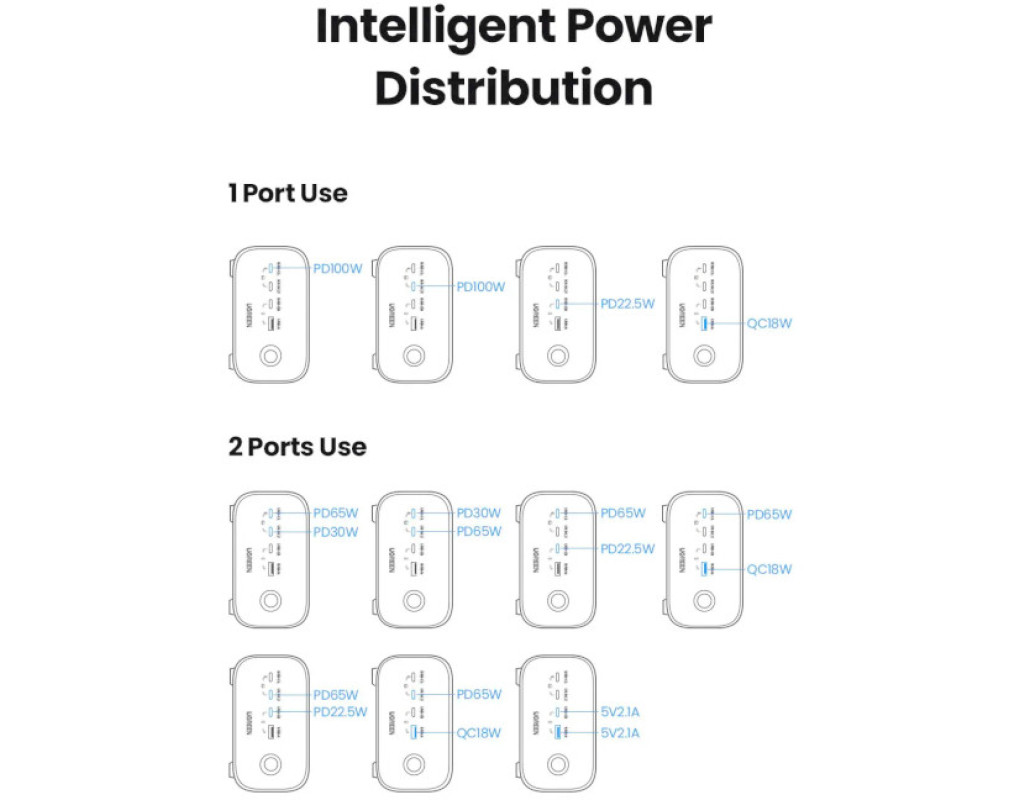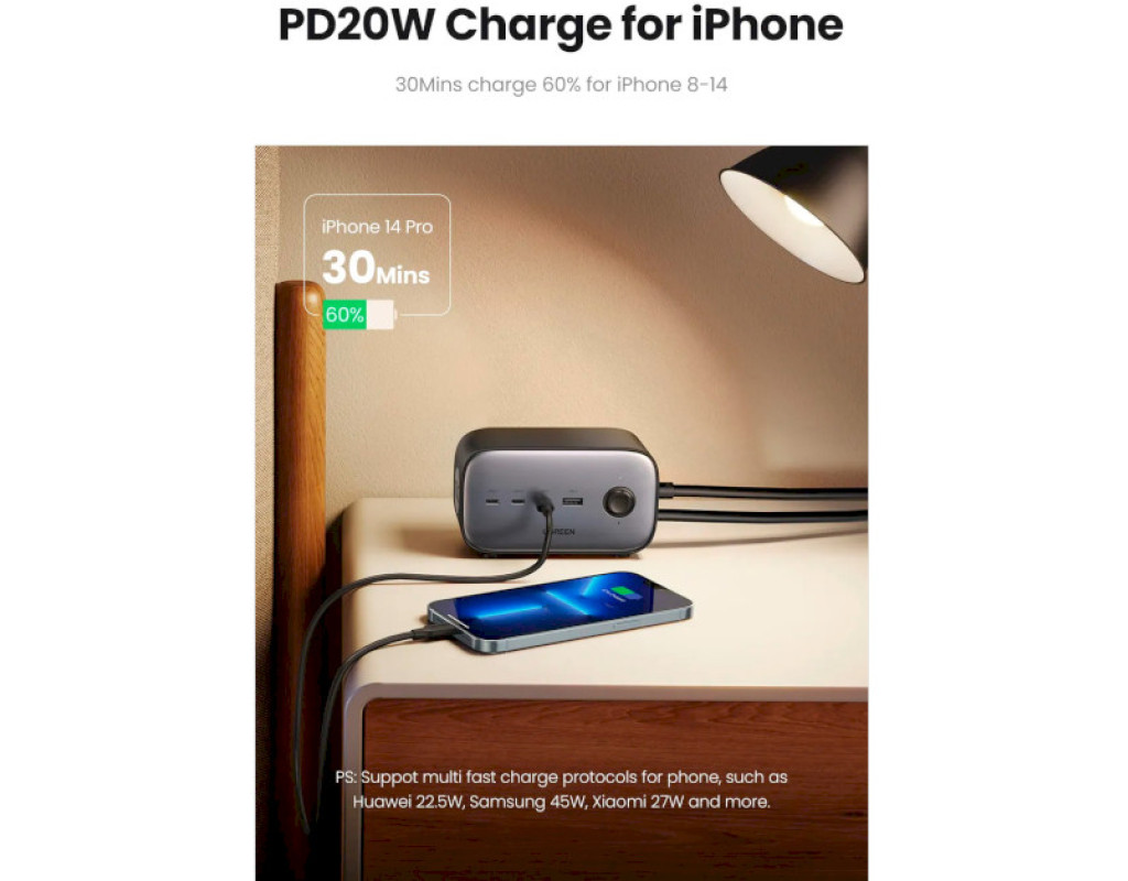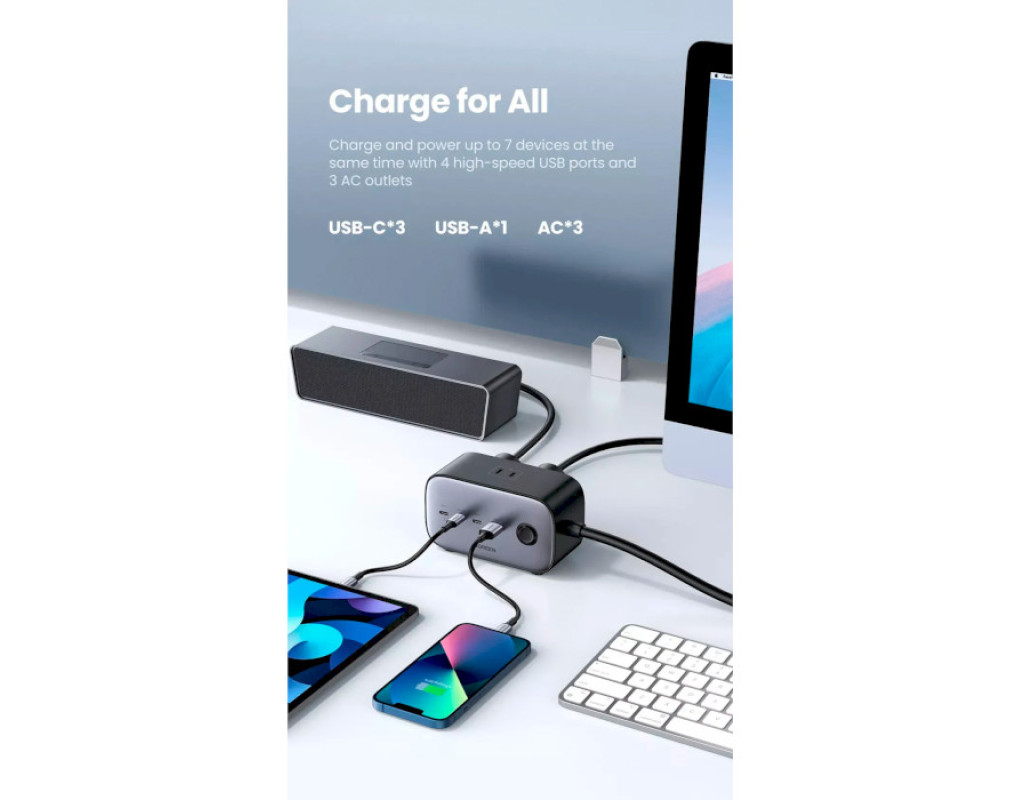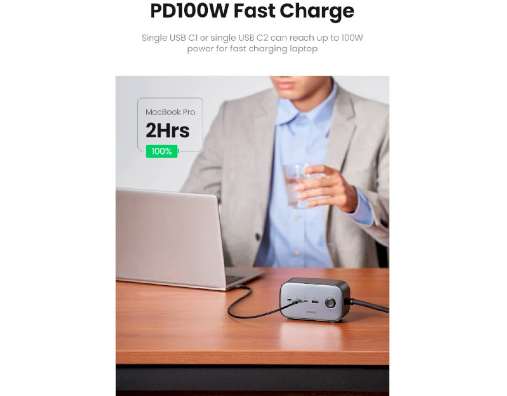 | Зарядное устройство Ugreen CD270 100W DigiNest Pro оснащено 3 портами USB-C, портом USB-A и 2 розетками переменного тока. Он может одновременно заряжать и питать до 6 устройств и поддерживает технологию быстрой зарядки PD 100 Вт. Улучшенная конструкция продукта стала возможной благодаря технологии GaN III.