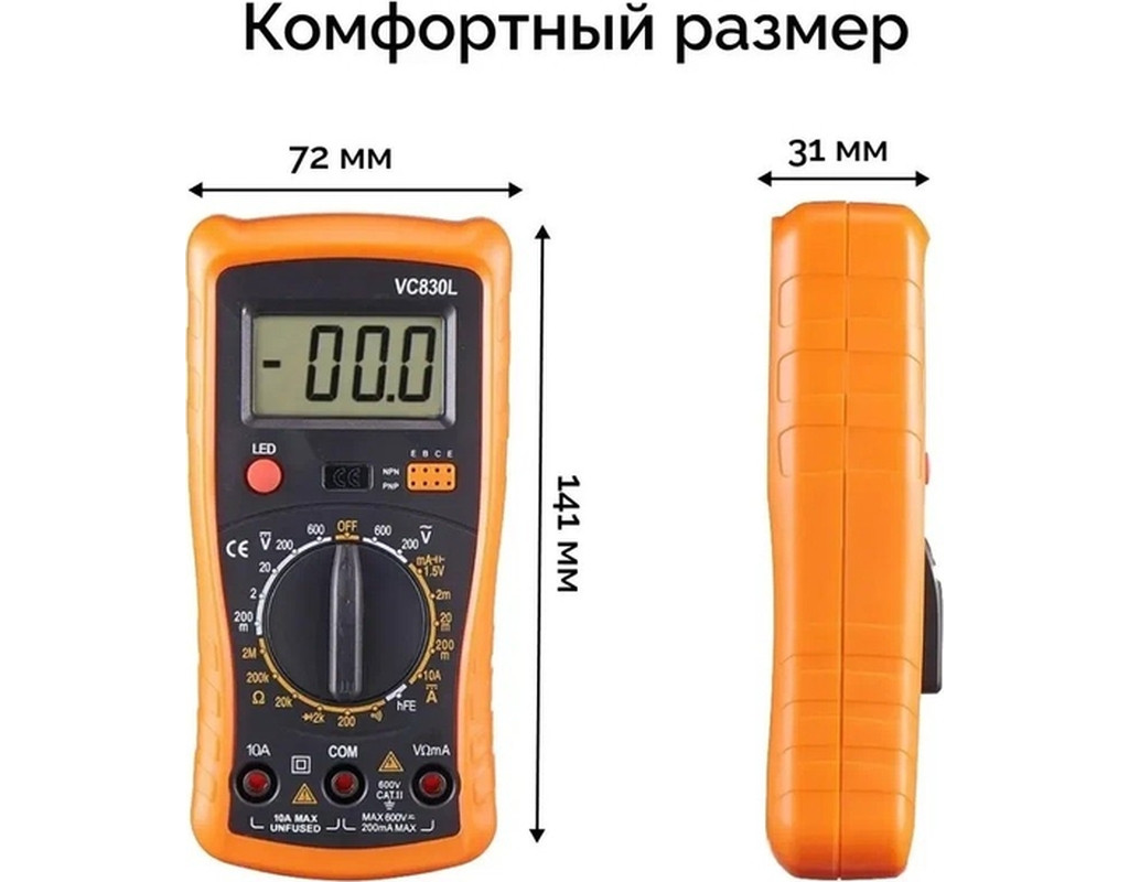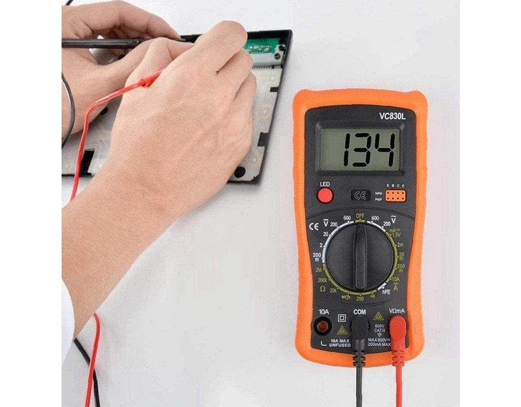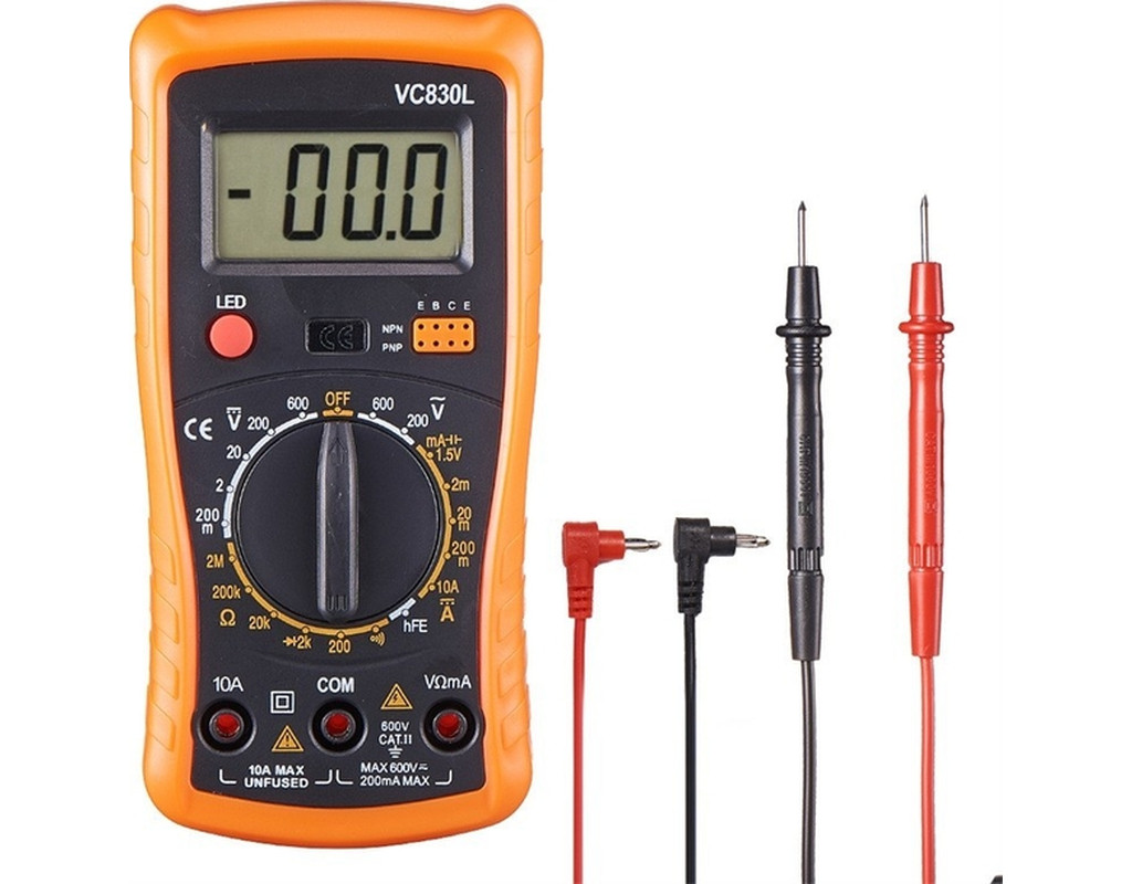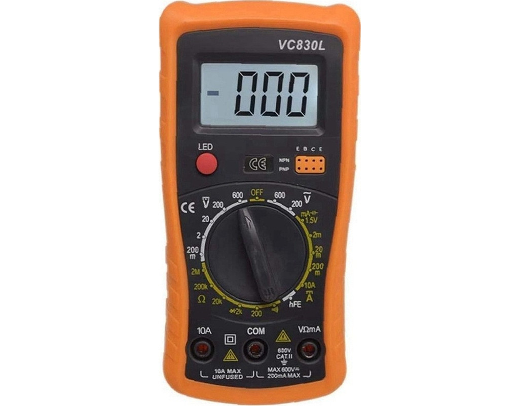 Victor VC830L - это ручной цифровой мультиметр, незаменимый инструмент для любого, кто работает с электроникой, будь то профессионал или любитель. Он позволит вам точно измерять: