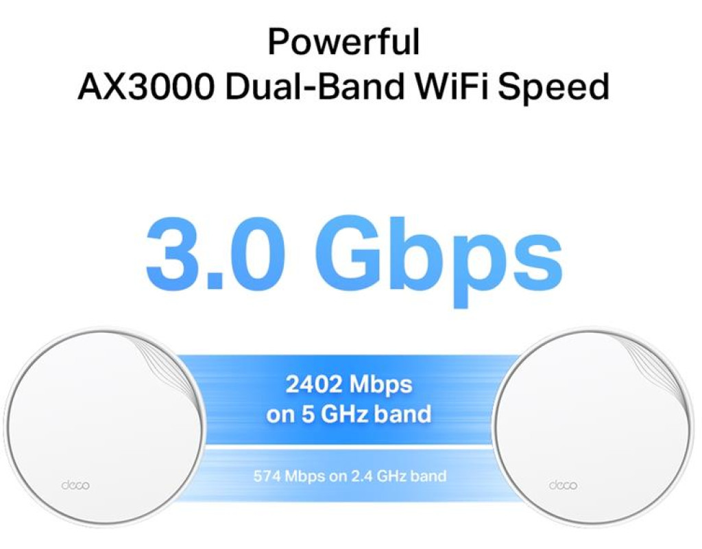 | Двухдиапазонный Wi-Fi AX3000 – 2402 Мбит/с (5 ГГц) + 574 Мбит/с (2,4 ГГц).