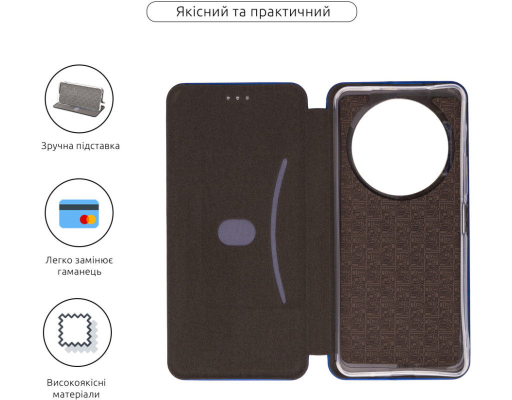 совместимость с моделями - Xiaomi Redmi A3, Тип чехла для телефона - книжка, Назначение - модельный, Материал - искусственная кожа, силикон, Цвет - синий