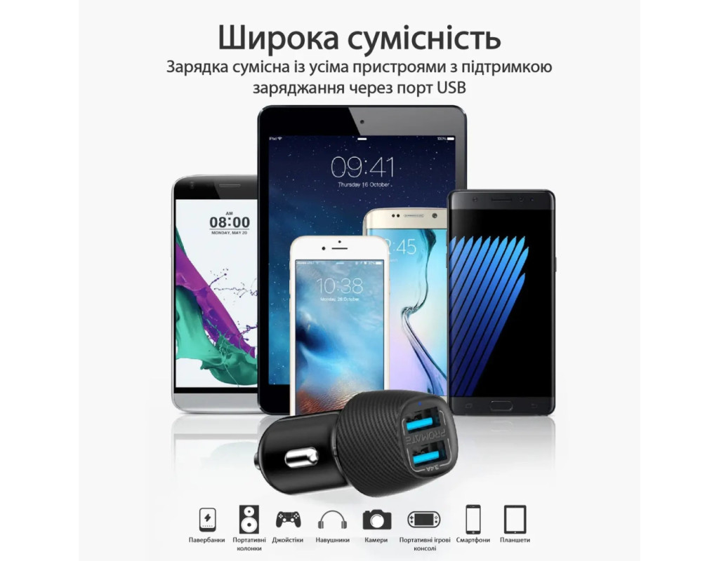 | Зарядное устройство Promate 17W 2xUSB (voltrip-duo.black) — отличный выбор для тех, кто ценит эффективность и стиль в автомобиле. Разработанный специально для автомобильных прикуривателей, этот адаптер обеспечивает всю необходимую мощность для вашего динамичного образа жизни. Благодаря максимальной выходной мощности 17 Вт, вы можете заряжать два устройства одновременно, не снижая скорость их работы. С двумя USB портами, каждый из которых способен выдавать до 2.4 А тока, зарядка различных гаджетов, таких как смартфоны, экшн-камеры, смарт-часы, фитнес-браслеты, TWS наушники и геймпады, становится быстрой и безопасной. Интеллектуальная система адаптивной зарядки автоматически оптимизирует уровень подаваемой энергии, гарантируя сохранность ваших устройств. Благодаря интегрированному чипу Smart IC, это устройство защитит ваши гаджеты от перегрева, скачков напряжения и коротких замыканий. Кроме того, стильный корпус, имитирующий карбон, добавляет эстетической привлекательности, а также функциональности, обеспечивая надежную фиксацию в прикуривателе. Promate Voltrip-Duo — ваш надежный партнер в дороге, сочетающий высокое качество зарядки, безопасность и элегантный дизайн. Выбирайте лучшее для вашего авто! |