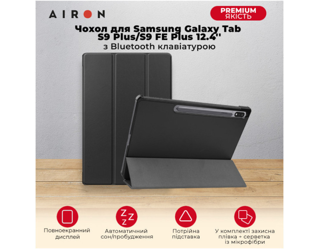 Чехол для планшета AirOn Premium Samsung Galaxy Tab S9 Plus/S9 FE Plus 12.4'' 2023 + Film black (4822352781109)