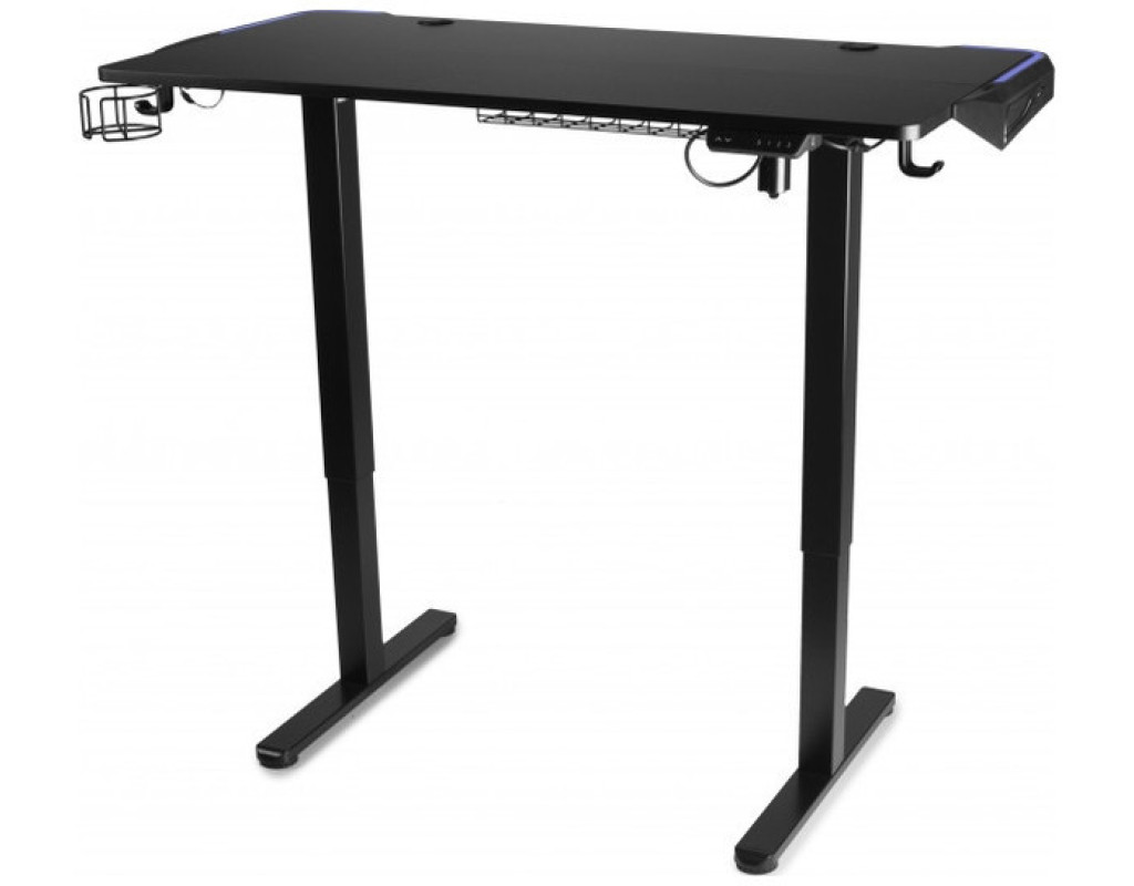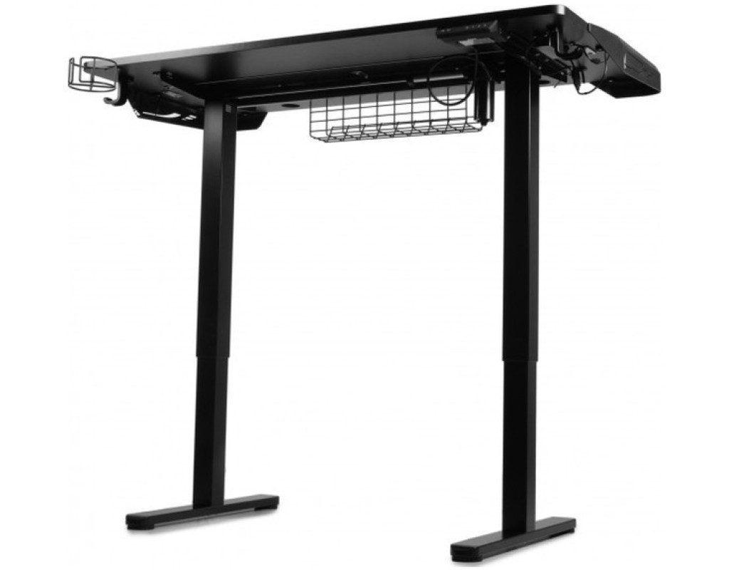 Размер столешницы 1200 x 600 мм. Высота регулируется от 720 до 1180 мм. длина хода 460 мм, вход 110-240 В, макс. грузоподъемность 70 кг, скорость 20 мм\с, светодиодный дисплей + 3 запоминающихся позиции + 1 порт USB Type-A + 1 порт USB Type-C, 2 телефонных крючка + 1 кабельное управление + 1 подстаканник (подстаканник) + радужный свет RGB в пластиковых деталях с обеих сторон края столешницы – все эти аксессуары вместе упакованы в коробку этого стола.