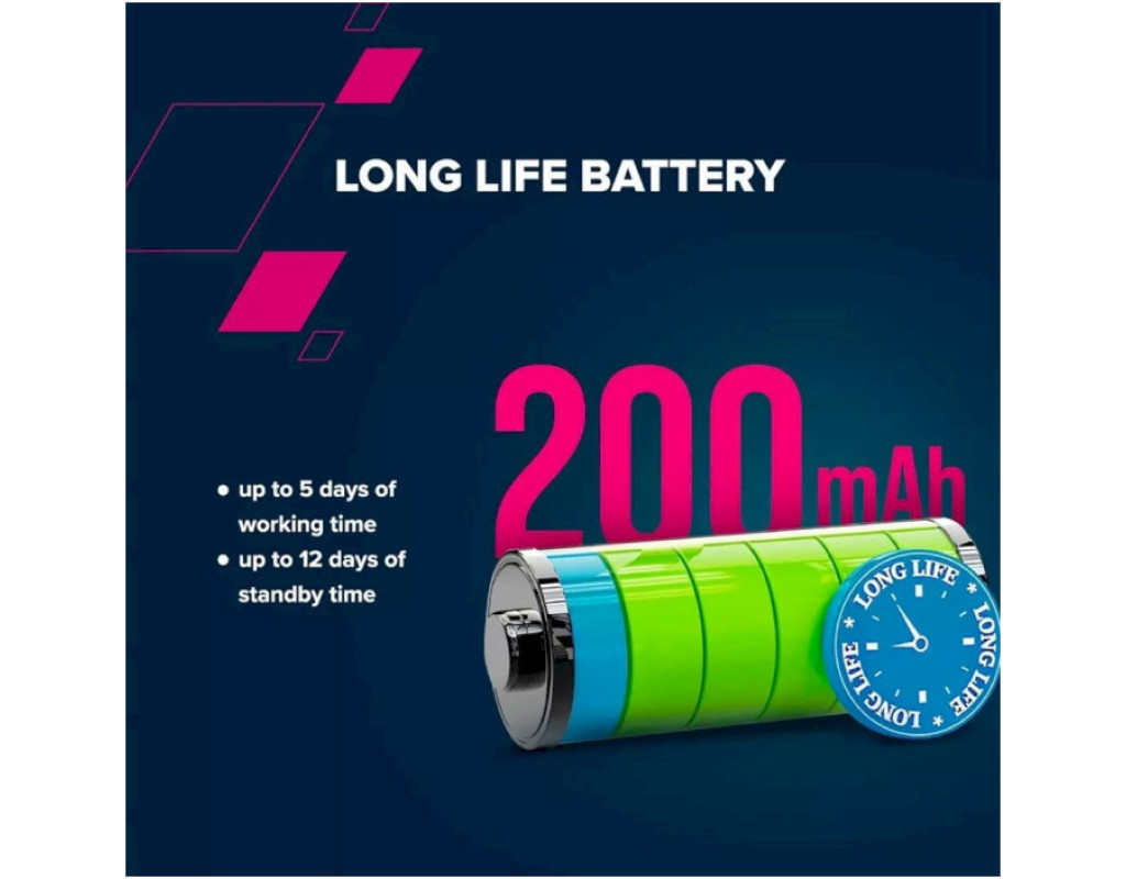 Смарт-часы Canyon Easy имеют надежный аккумулятор емкостью 200 мАч, который обеспечивает до 5 дней работы и до 12 дней в режиме ожидания. Это позволяет носить его круглосуточно, не беспокоясь о том, что он разрядится.