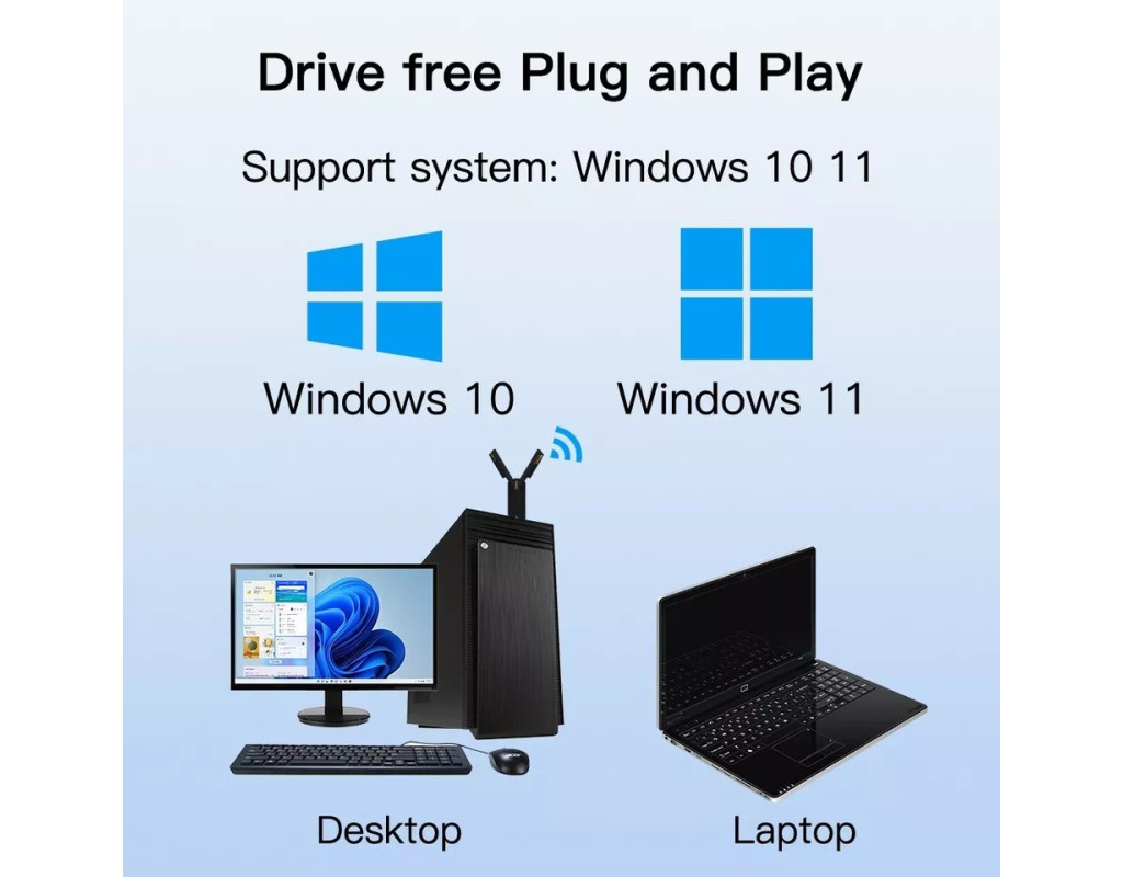 Технология MU-MIMO: WiFi-адаптер для ПК может одновременно передавать два потока данных. При использовании в сочетании с совместимым роутером MU-MIMO он может значительно улучшить поток и эффективность всей сети. Сверхбыстрый порт USB 3.0: он может принимать сверхбыструю передачу данных со скоростью до 5 Гбит/с, гарантируя, что производительность WiFi адаптера достигнет максимальной скорости и более стабильного подключения к Интернету. (совместим с USB2.0) Стабильный Wi-Fi: беспроводная сетевая карта оснащена 2 беспроводными антеннами, высоким коэффициентом усиления 5 дБ, расширенным соединением WiFi и отличной стабильностью на настольных компьютерах, ноутбуках и ПК. На более качественное соединение (скорость), чем встроенные антенны. Поддерживает сверхбыструю модуляцию сигнала: DBPSK, DQPSK, CCK, 16QAM, 64QAM, 256QAM, 1024QAM. Поддерживает диапазон частот: 20 МГц/40 МГц/80 МГц/160 МГц. Сейчас самый быстрый сетевой адаптер с полосой частот 160 МГц. Возможности использования: для раздачи WiFi 6Е и подключения к WiFi 6Е. При этом вы получите максимальную поддержку новых функций стандарта WiFi 6ГГц (при использовании роутера WiFi 6ГГц). Широкая совместимость: беспроводная сетевая карта проста в установке. Windows 10 64 бит/Windows 11 64 бит. Требует установку драйвера, при первом подключении определяется как флешка на которой драйвер. Требуется перезагрузка системы. * Для скорости 2400 Мбит/с роутер должен поддерживать ширину полосы пропускания 160 МГц. |
