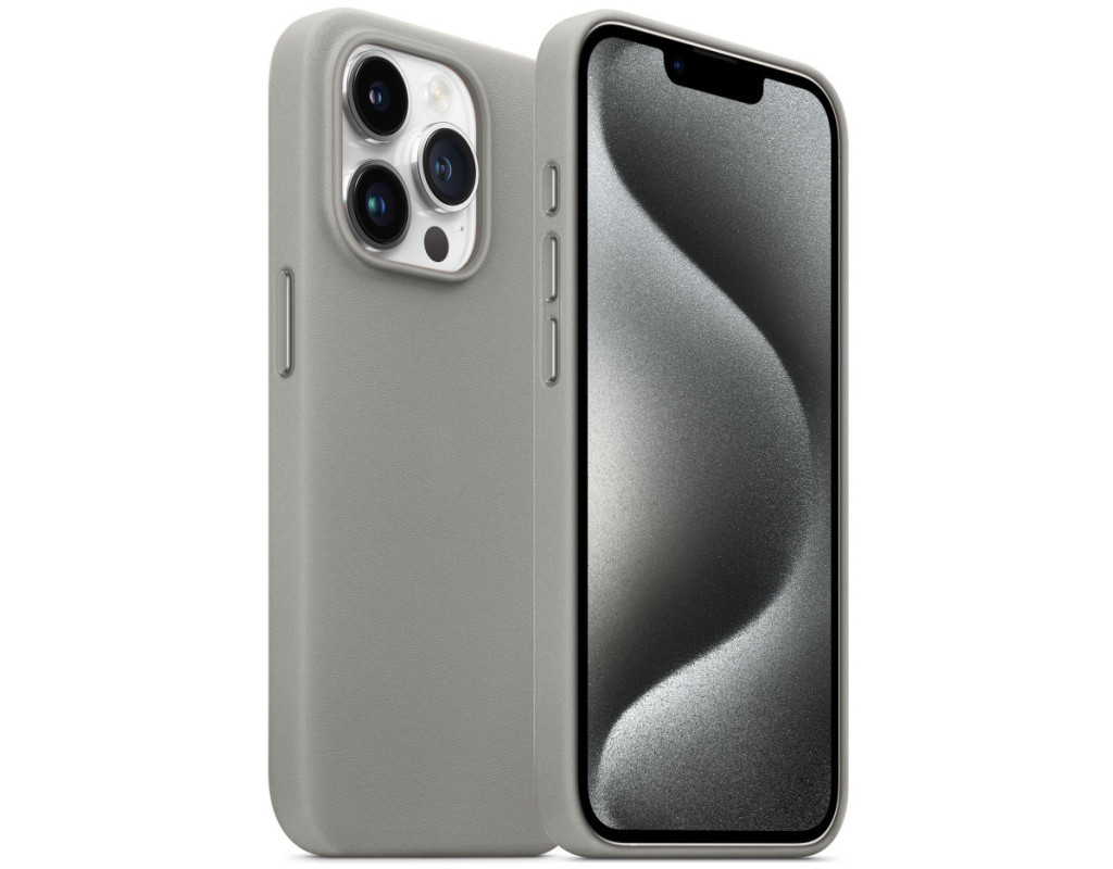совместимость с моделями - Apple iPhone 15 Pro Max, Тип чехла для телефона - накладка, Назначение - модельный, Материал - искусственная кожа, Цвет - серый