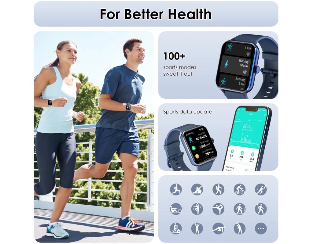 Акселерометр, 25 спортивних режимів, мікрофон, вібромотор, керування камерою та музикою, регулювання яскравості, захист за стандартам IP68, магнітна зарядка, функція гучного зв'язку, контроль денної активності, трекінг сну, пульсометр, рівень кисню у кров |