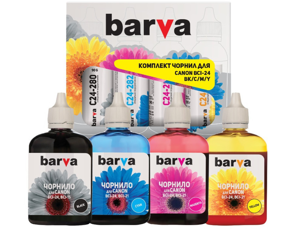 Чернила Barva Canon BCI-21/BCI-24, 4x100г BK/C/M/Y (C24-090-MP/C24-100-MP)