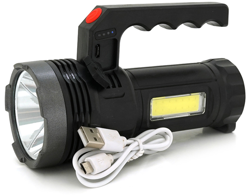 | Ліхтар пошуковий USHL-828, 1LED T6+COB, 3W, 3+1 режими, 1200mah, Black, IP40, USB кабель+Solar, 150х60х90мм, BOX |