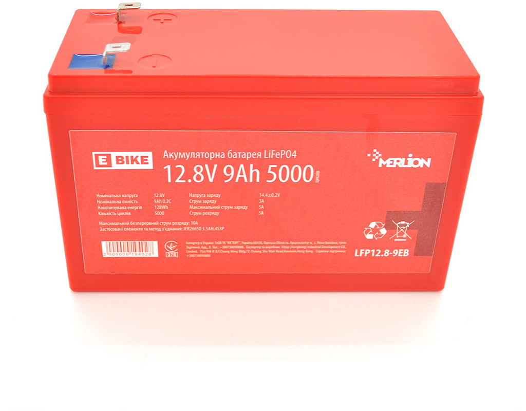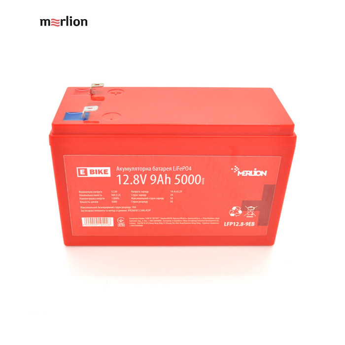 Литий-железо-фосфатный аккумулятор Merlion LiFePO4 12.8V 9AH – топовый аккумулятор на долго! Применяется для электротранспорта(электромобиля, электровелосипедов, машин для гольфа и др), систем бесперебойного питания, в солнечной/ветровой энергетике, осветительном оборудовании. Особенности: - Пожаро-взрывобезопасен при сильном ударе, перезарядке или замыкания