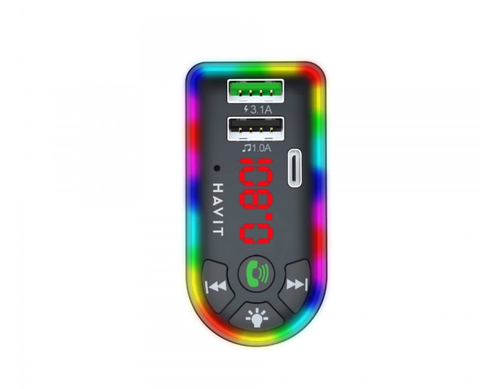 Бездротовий автомобільний FM трансмітер HAVIT FM813BT - оснащений роз’ємами для підключення зовнішніх носіїв USB та Micro SD, а також має можливість заряджати пристрої. Здатний відтворювати аудіо файли у форматі MP3/WAV. FM модулятор використовується в основному в автомобілях в якості універсального пристрою, який поєднує в собі зарядний пристрій та цифровий плеєр. Компактний та сучасний дизайн, який має вбудовану RGB підсвітку. Разом з ним ви можете насолоджуватися прослуховуванням того, що ви хочете за допомогою широкого функціоналу. Має оновлену версію Bluetooth V5.3, а FM-передавач дозволяє здійснювати дзвінки в режимі гучного зв'язку, слухати музику, користуватись голосовим GPS-навігатором. Гарантія - 12 місяців. Синхронізація вашого телефону з FM-передавачем відбувається через Bluetooth. Діапазон налаштування FM каналу в діапазоні: 87.5~108 МГц. За допомогою кнопок керування можна налаштувати діапазон FM передавача. Підключіть пристрій в прикурювач автомобіля, переведіть його в режим FM-радіо і переконайтеся, що передавач частоти FM-сигналу збігається з передавачем автомобіля, обрану частоту добре видно завдяки LED диспею, який також відображає інформацію щодо номеру пісні використовуючи в інших режимах. FM модулятор має вбудовані 2xUSB-A порти та 1xUSB-C + роз'єм Micro SD під карти пам'яті. Максимальний вихідний струм складає 5В/3.1А, що дозволяє швидко заряджати мобільні пристрої. Функція пам’яті В режимі бездротового з’єднання автоматично перемикається з відтворення аудіо в режим Hands-Free під час вхідного дзвінка. Для того щоб прийняти вхідний дзвінок, або завершити його, достатньо одного натискання кнопки дзвінка. Подвійне натискання кнопки дзвінка дозволяє зателефонувати на останній номер. |