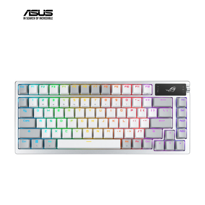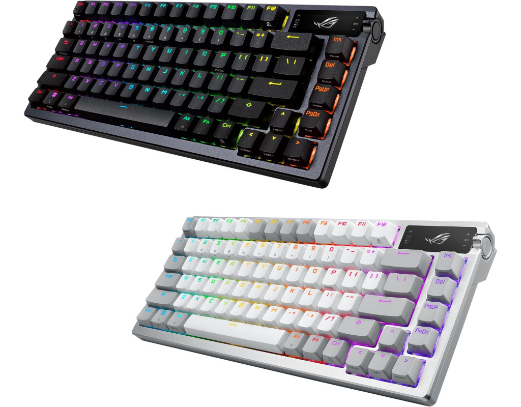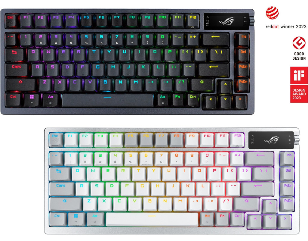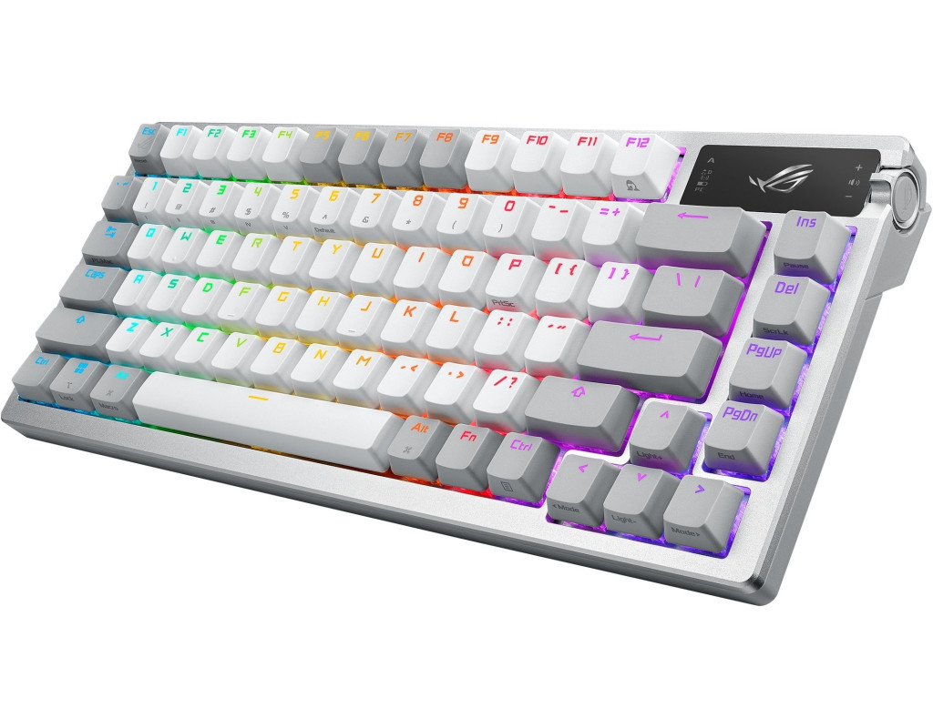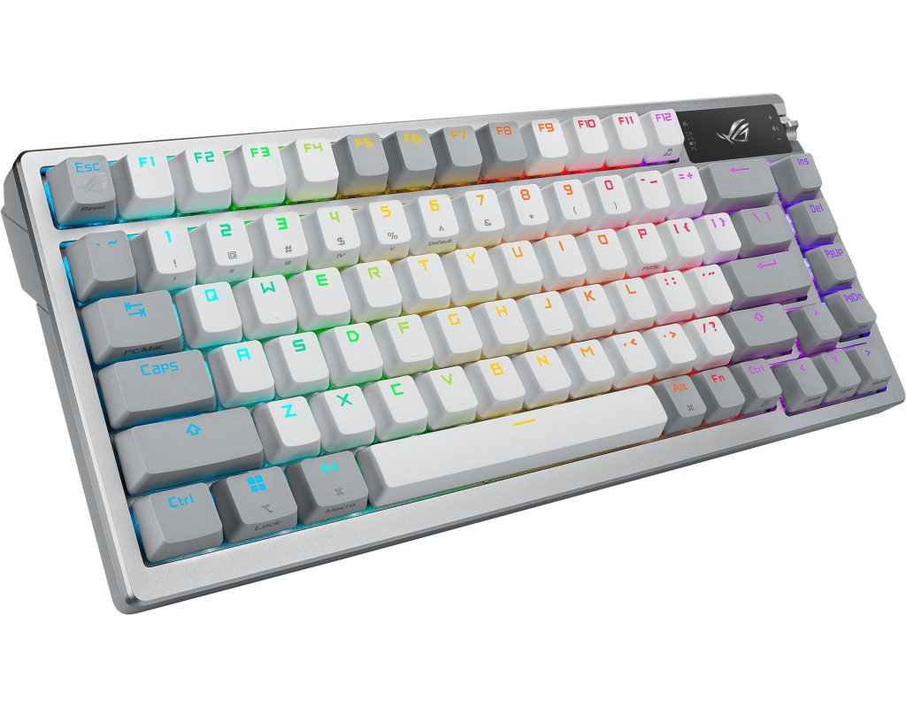 | Геймерская клавиатура ROG Azoth: возможность персонализации, формфактор 75%, упругая прокладка в креплении верхней металлической пластины, три демпфирующих слоя, предварительно смазанные механические переключатели ROG NX с возможностью горячей замены, стабилизаторы клавиш, двухкомпонентные PBT-колпачки, набор для смазки, три режима подключения, технология SpeedNova в режиме 2,4 ГГц, OLED-дисплей, 3-позиционный регулятор, три угла наклона, поддержка Mac.