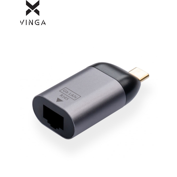 Переходник USB-C to RJ45 Ethernet 1000Mbps compact Vinga (VCPATCLGBC)