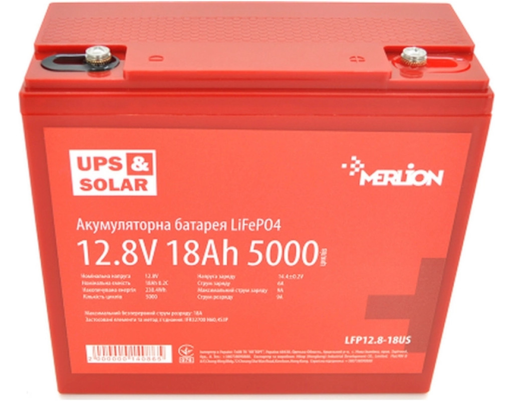 Батарея LiFePo4 Merlion LFP12.8-18 - это революционный подход к современным энергетическим решениям. Сделана с использованием новейших технологий, она обеспечивает напряжение 12.8 В и имеет ёмкость 18 Аг, что делает её идеальной для разнообразных применений, от солнечных систем до резервного питания.