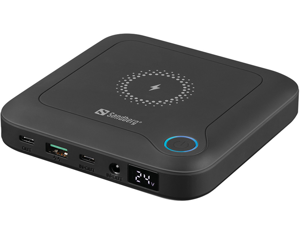 Беспроводная зарядка: 10W max. Комплектация: внешний аккумулятор, блок питания AC (разъем EU, длина кабеля 1м), 12 переходников для ноутбука, зарядный кабель DC (75 см), зарядный кабель USB Type-C - USB Type-C (75 см), инструкция. Переходники в комплекте: