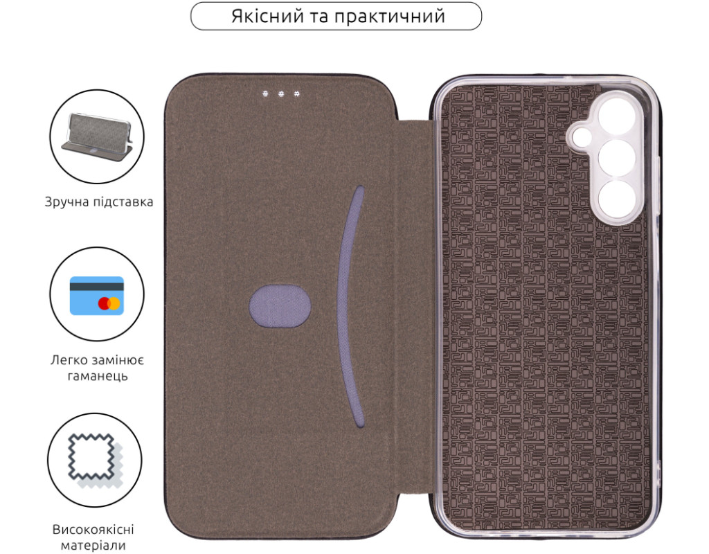 совместимость с моделями - Samsung Galaxy M15, Тип чехла для телефона - книжка, Назначение - модельный, Материал - полиуретан, Цвет - черный