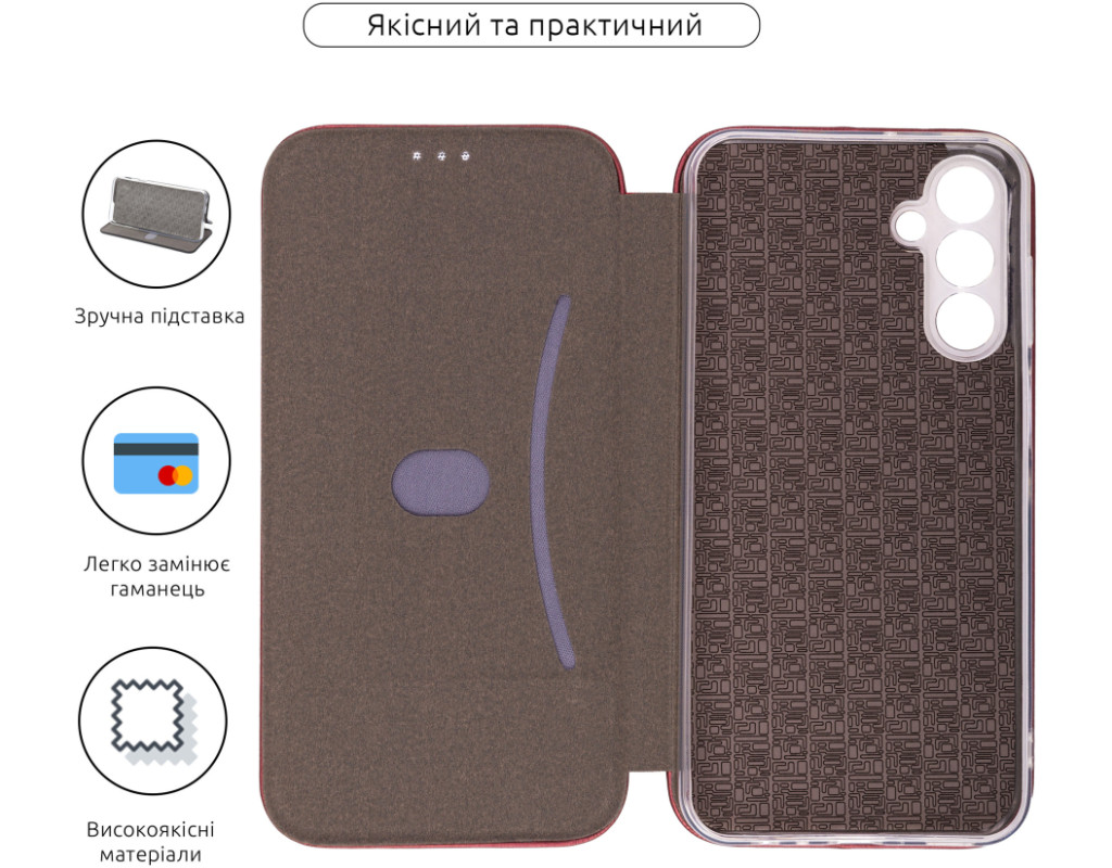 совместимость с моделями - Samsung Galaxy M15, Тип чехла для телефона - книжка, Назначение - модельный, Материал - полиуретан, Цвет - марсала