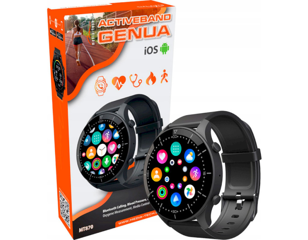 Смарт-часы Media-Tech ACTIVEBAND GENUA MT870 – идеальное решение для активных людей, позволяющее постоянно контролировать свою активность. С ним вы можете считать шаги, проверять пройденное расстояние и количество калорий, чтобы еще больше мотивировать себя к тренировкам. Он также имеет функцию напоминания о движении, которая известит вас, когда придет время немного подвигаться. Разговаривайте с помощью смарт-браслета Чтобы не пропустить важный звонок, не обязательно носить с собой телефон! С помощью BT Calling можно принимать и совершать звонки со своего смарт-браслета. Это возможно благодаря встроенному микрофону и динамику, которые делают разговор таким же комфортным, как через ваш смартфон. Все, что вам нужно сделать это создать пару ACTIVEBAND GENUA MT870 с вашим телефоном, чтобы использовать эту функцию. Всегда в курсе событий Благодаря уведомлениям на экране смарт-часов Activeband GENUA MT870 вы не упустите ни одного важного текстового сообщения, а также узнаете сообщения в социальных сетях. Вы также можете подключить его к камере вашего смартфона и просто потрясти запястьем, чтобы сделать фото на телефон. Дополнительной интересной функцией является вибрация, которая уведомляет вас, когда вы находитесь вдали от телефона. Здоровье под контролем Смарт-часы позволяют не только отслеживать вашу активность, но и ключевые функции организма, включая пульс, кровяное давление и насыщенность крови кислородом, чтобы вы могли быстро заметить любые изменения. Он также даст вам знать, как долго и эффективно вы спите каждую ночь, помогая вам обеспечить здоровый сон. Стабильное соединение Смарт-часы Activeband GENUA MT870 поддерживают Dual Bluetooth 5.0 и 5.0, поэтому они без проблем подключаются к устройствам на Android и iOS. Часы совместимы с Android 5.0 или более поздней версии и iOS 9.2 или более поздней версии, поэтому они без проблем подключаются к большинству смартфонов. Внешний вид, приспособленный к вам Дизайн смарт-часов Activeband GENUA MT870 не только функционален, но и очень эстетичен. Он оснащен круглым TFT-экраном, на котором можно настроить графический дисплей в соответствии со своим стилем. Его дизайн можно изменить в считанные секунды и адаптировать к случаю и вашему настроению – выбирайте из классического, минималистического, спортивного и художественного циферблатов. |