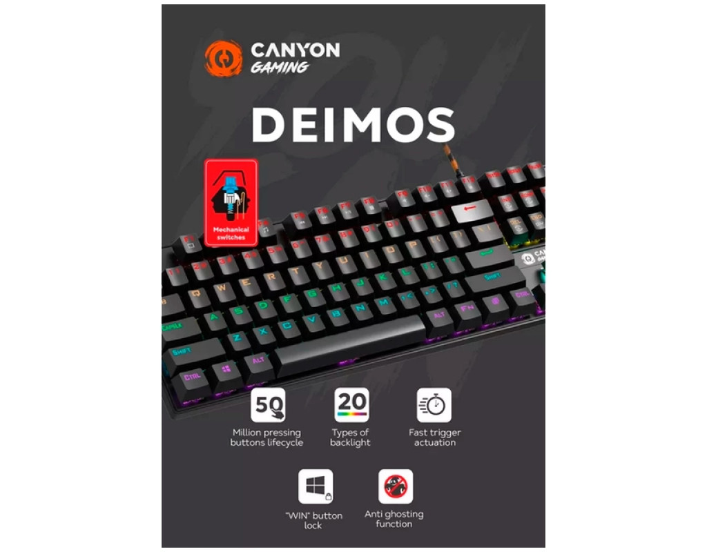 | Клавиатура Canyon Deimos GK-4 Rainbow LED USB UA Black (CND-SKB4-US) – это воплощение высокого качества и современных технологий для каждого геймера. Эта механическая клавиатура создана для обеспечения надежного игрового процесса с исключительной чувствительностью и скоростью срабатывания. Благодаря инновационному механизму хода клавиш, она станет вашим важным союзником в любых виртуальных битвах. Одной из ключевых особенностей этой модели являются 104 сверхпрочные кнопки с тактильным откликом, что гарантирует отклик и быстрое срабатывание. Клавиатура рассчитана более чем на 50 миллионов нажатий, что обеспечивает долговечность и стабильность в работе. Ход клавиши составляет 4 мм, а активация триггера – 2 мм, что делает ее особенно удобной для игр, требующих повышенной реакции и скорости. Благодаря функции 100% защиты от фантомных кликов и технологии NKRO, вы получите максимальное удовольствие от игры. Каждое нажатие передается без ошибок и в нужном порядке, что поможет избежать любых задержек или сбоев в напряженных сессиях. Одним из главных акцентов модели Canyon Deimos GK-4 является Rainbow LED подсветка, которая превращает клавиатуру в яркий элемент вашего компьютерного пространства. 20 типов подсветки позволяют настроить атмосферу в соответствии с вашим настроением, делая каждую сессию уникальной и захватывающей. Особого внимания заслуживает технология Double Injection, которая используется для нанесения символов на клавиши. Символы никогда не сотрутся, даже при длительной и частой эксплуатации, а подсветка выглядит впечатляюще в любой обстановке. Клавиатура также оснащена функцией блокировки кнопок "Win/Start", которая обеспечивает бесперебойный игровой процесс, исключая случайные нажатия во время напряженных игровых моментов. Кабель длиной 1.8 м с оплеткой и ферритовым фильтром гарантирует высокую скорость и точность передачи данных, сводя электрический шум к минимуму. Это делает Canyon Deimos GK-4 идеальным выбором для профессиональных игроков, ориентированных на качество и надежность. В целом, клавиатура Canyon Deimos GK-4 Rainbow LED является идеальным вариантом для тех, кто ценит качество, удобство и уникальные функциональные возможности. Совместимость с операционной системой Windows делает ее широко доступной для любого пользователя, ищущего оптимальный инструмент для полного погружения в геймерский мир. |