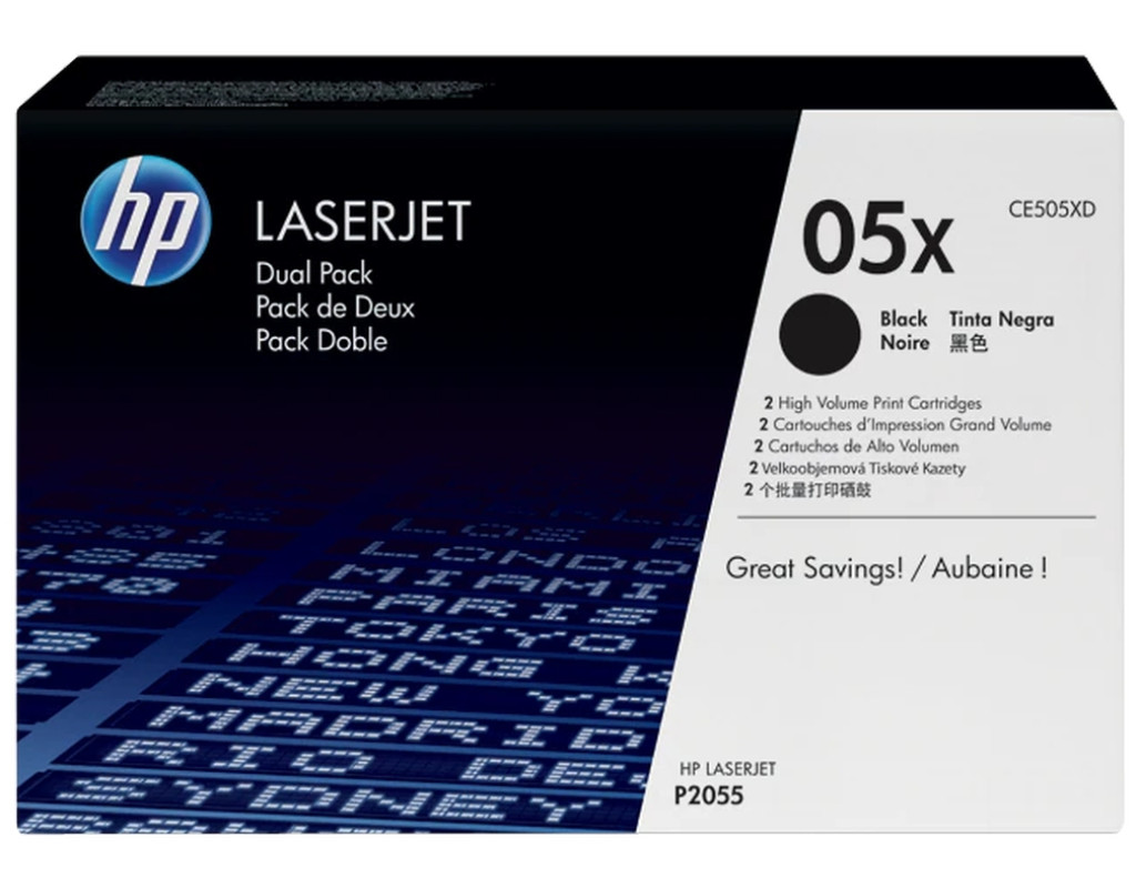 | Картридж HP LJ P2055d/2055dn (CE505XD) Ресурс: 2х6500 стр. при 5% заполнении страницы Расход картриджа HP LJ P2055d/2055dn (CE505X) зависит от того, насколько страница заполнена. Стандартный текст (не жирный, не подчеркнутый, без рисунков) дает приближенно 5% заполнение. Это характеристика заполнения тонером поверхности бумаги, и нормы расхода тонера (ресурс картриджа) приводятся именно по ней. Указанные выше ориентировочные значения приведены для справки и могут существенно отличаться для разных моделей устройств печати. Совместимые модели с HP LJ P2055d/2055dn (CE505XD): HP LaserJet P2055d, HP LaserJet 2055dn |