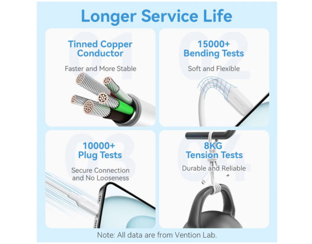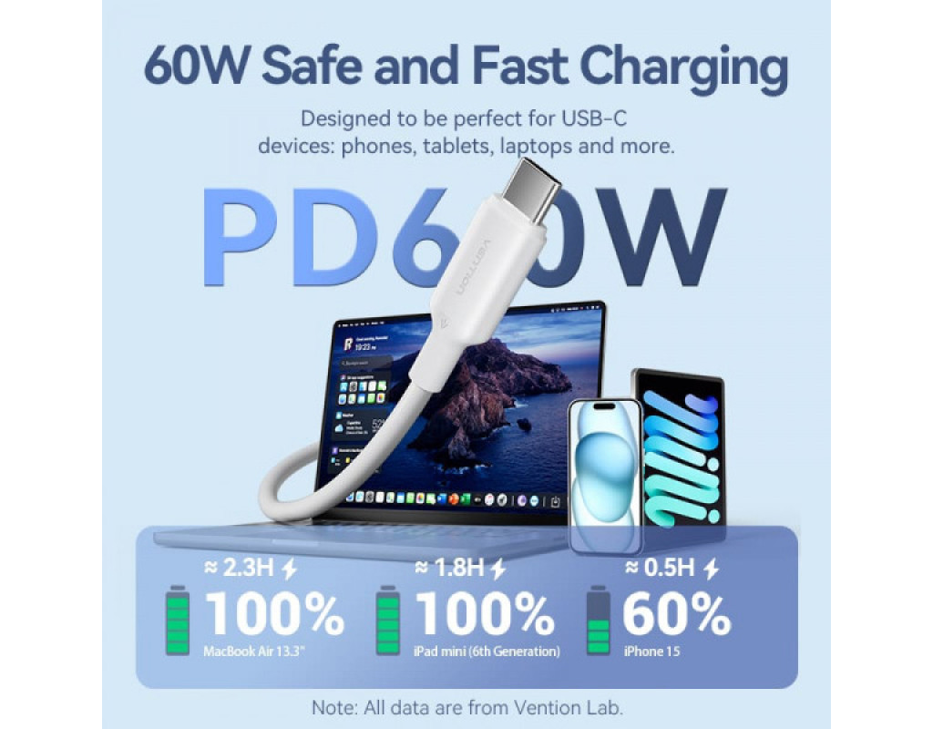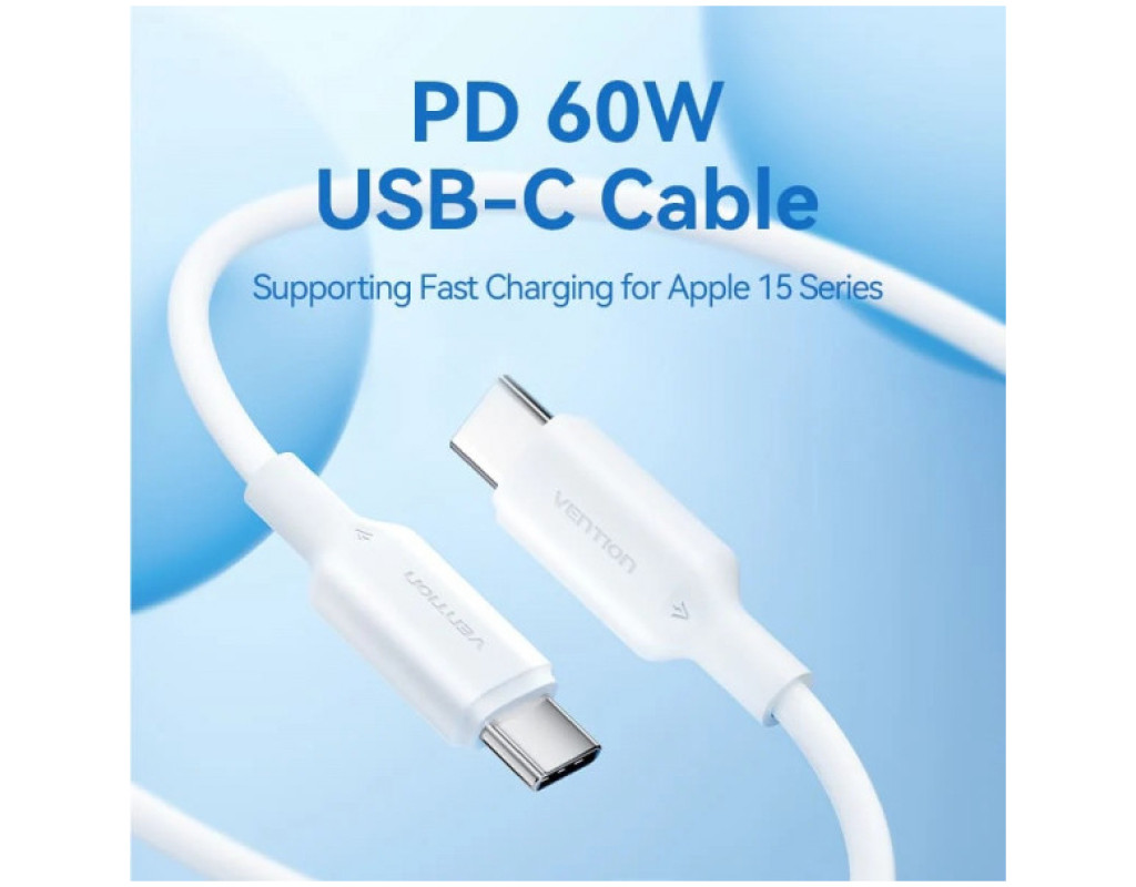 Дата кабель USB-C to USB-C 1.0m 60W white VENTION (TRCWF)