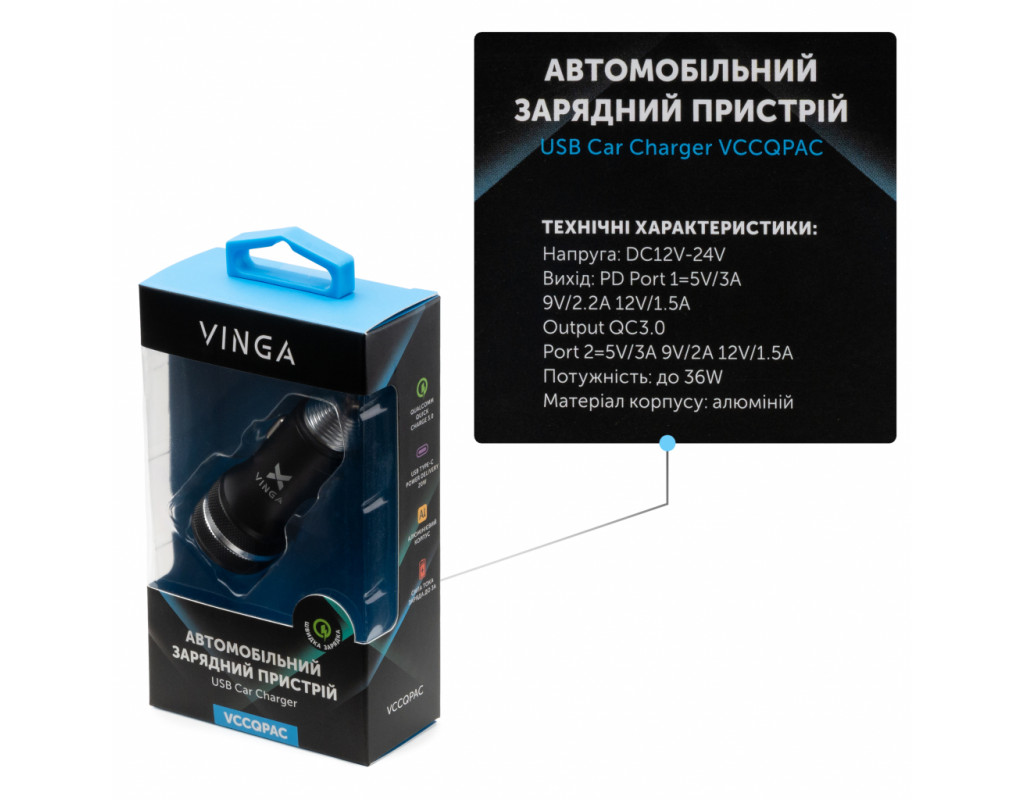 | Знакомьтесь, зарядное устройство Vinga QC3.0 + PD Quick Car Charger – идеальный выбор для тех, кто проводит много времени в автомобиле и ценит эффективность и скорость зарядки. Этот адаптер подключается непосредственно к прикуривателю автомобиля, обеспечивая непрерывную подачу энергии, необходимую вашим гаджетам. Благодаря универсальному назначению устройства, вы можете заряжать любые мобильные устройства без лишних беспокойств. Особенностью этого зарядного устройства является его высокая мощность – до 36 Вт, что позволяет быстро заряжать даже самые требовательные гаджеты благодаря поддержке технологий Quick Charge и Power Delivery. Эти передовые технологии гарантируют, что ваш смартфон или планшет получит заряд до 70% быстрее, чем при стандартной зарядке. Зарядное устройство оснащено двумя разъемами: 1 x USB Type-C и 1 x USB, что даёт вам гибкость в выборе подключений – теперь вы можете одновременно заряжать несколько устройств. Vinga QC3.0 + PD Quick Car Charger изготовлен из прочного алюминия, что обеспечивает долговечность и эстетичный вид, идеально подходя к интерьеру любого автомобиля. Максимальный выходной ток 3 А гарантирует, что даже самые мощные гаджеты будут работать без задержек. Выберите Vinga – сделайте ваше путешествие комфортнее и технологичнее. |
