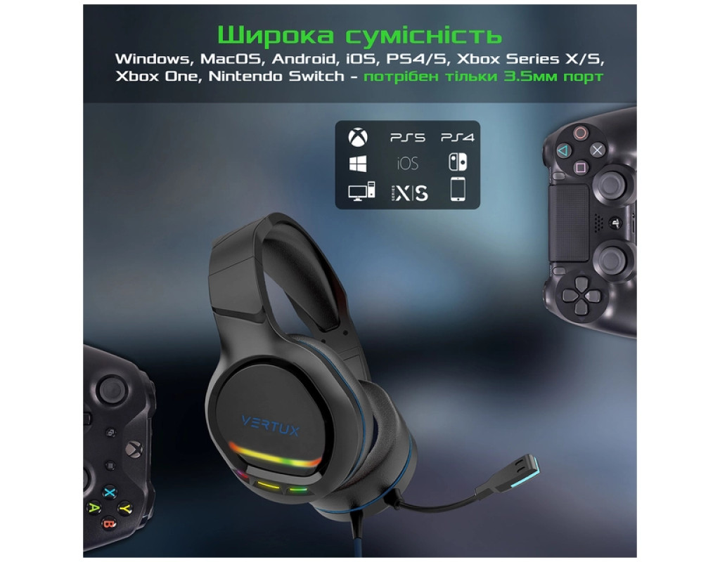 | Наушники Vertux Tokyo 7.1 Mini Jack 3.5мм Blue (tokyo.blue) открывают новый горизонт звуковых впечатлений для геймеров и меломанов. Благодаря расширенным функциям и инновационной конструкции, Vertux Tokyo — идеальный выбор для тех, кто ценит качество и функциональность. Эти наушники, относящиеся к категории полноразмерных геймерских моделей, оснащены передовыми 50-мм динамическими излучателями. Вместе с высококачественными неодимовыми магнитами они создают глубокий, насыщенный звук, способный полностью погрузить вас в игру или музыку. Еще одной яркой характеристикой является объемное 7.1 звучание. Эта технология позволяет точно определить направление звука, делая ваш игровой опыт максимально реалистичным — ни один враг не останется незамеченным на поле боя! Стильные наушники Vertux Tokyo имеют закрытую акустическую конструкцию, которая вместе с пассивной шумоизоляцией чашек эффективно блокирует внешние шумы. Это обеспечивает полное погружение в ваш любимый виртуальный мир без каких-либо помех. Встроенный микрофон с четкой передачей голоса и функцией шумоподавления вселяет уверенность в качественном общении с друзьями или командой во время игр и трансляций. Гибкая конструкция позволяет настроить его под наиболее удобным углом для вас. Чтобы изменить настройки непосредственно в процессе игры, наушники оснащены удобным встроенным контроллером для регулировки громкости и управления микрофоном и подсветкой. Комфорт использования этих наушников гарантирован. Мягкие амбушюры из экокожи, регулируемое оголовье с подкладкой и легкий вес в 230 г позволяют использовать их в течение длительного времени без чувства усталости. Что касается дизайна, Vertux Tokyo буквально светятся благодаря LED подсветке, которая добавляет настроения и драйва вашим игровым сессиям. Питание подсветки осуществляется через USB разъем, что значительно расширяет возможности подключения благодаря 1 jack 3.5 мм интерфейсу с 3 PIN-контактами, обеспечивая совместимость с широким спектром устройств, включая Windows, MacOS, Android, iOS, PS4, PS5, Xbox One, Xbox Series X, Xbox Series S, и Nintendo Switch. Высокое качество материалов, из которых созданы эти наушники, стало акцентом их конструкции. Чашки из АБС-пластика в сочетании с прочными регуляторами оголовья обеспечивают легкость и долговечность использования. Длинный шнур 2,1 м в нейлоновой оплетке со спаренным концом обеспечивает комфортную дистанцию до устройства и защиту от перегибов в местах соединения. С Vertux Tokyo 7.1 Mini Jack 3.5мм Blue ваши шансы на победу и удовольствие от прослушивания будут максимально повышены. Наслаждайтесь четкостью звучания, яркими эффектами и комфортом, которые дарят эти наушники каждому игроку или любителю качественной музыки. |