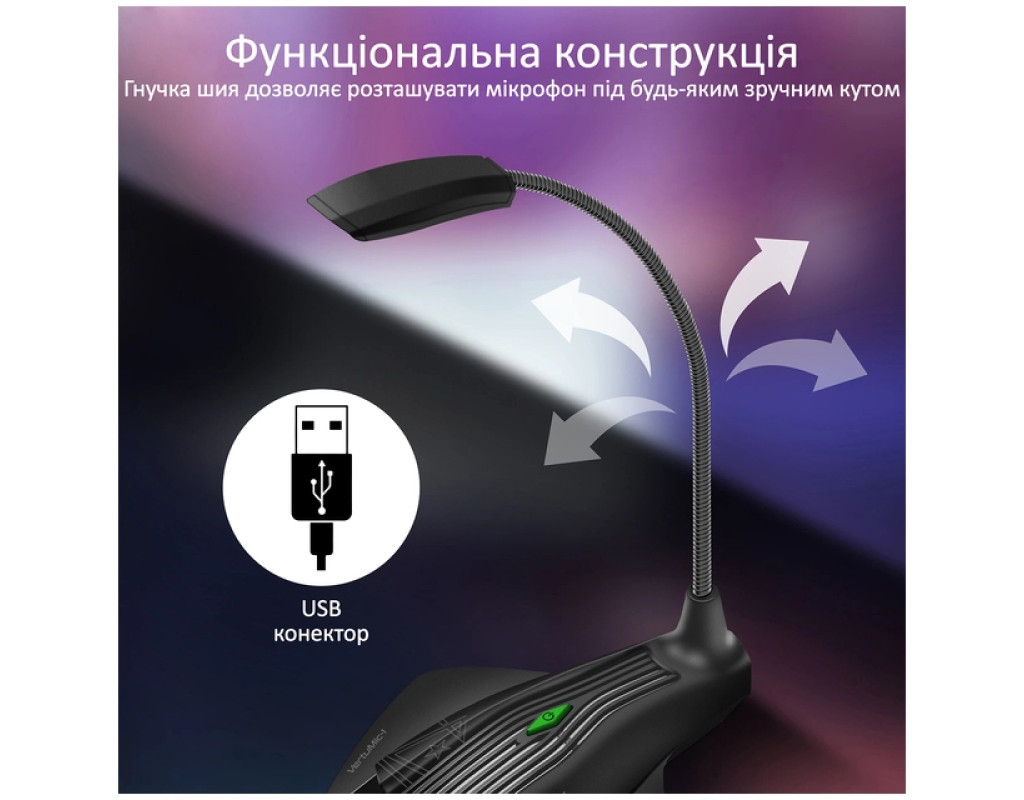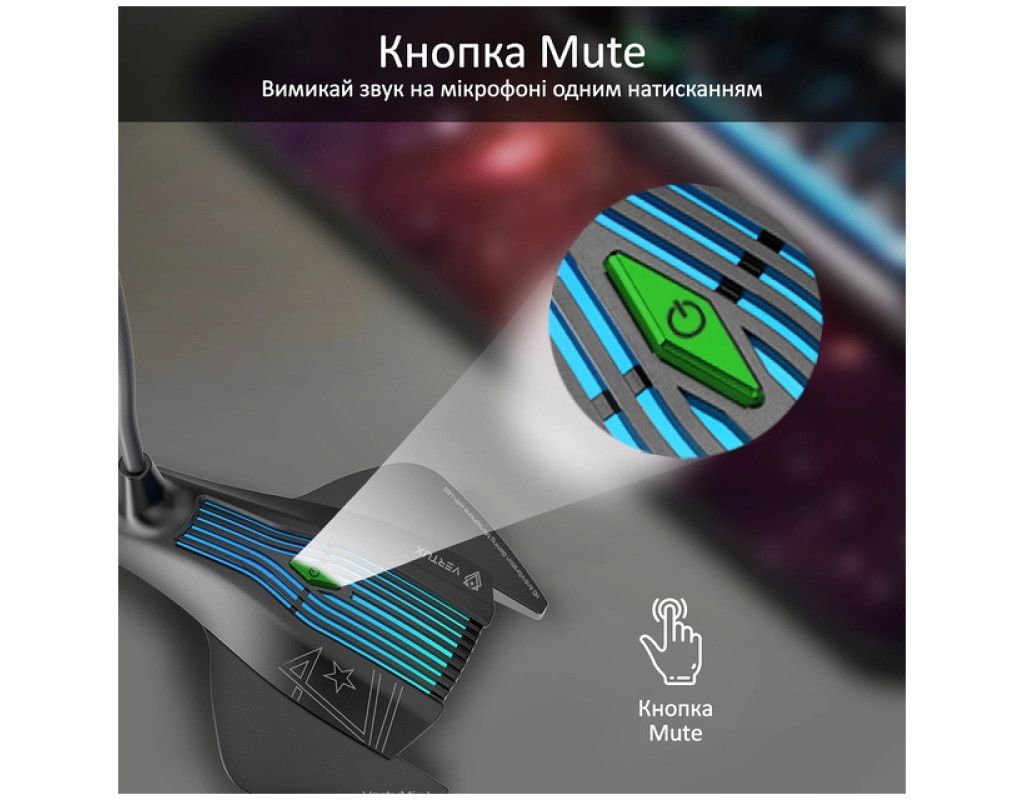 Vertux VertuMic-1 — геймерський мікрофон, який об'єднав у собі агресивний дизайн, якісне звукозаписування та атмосферну LED-підсвітку, стане ідеальним доповненням твоєї ігрової зони. Особливості: