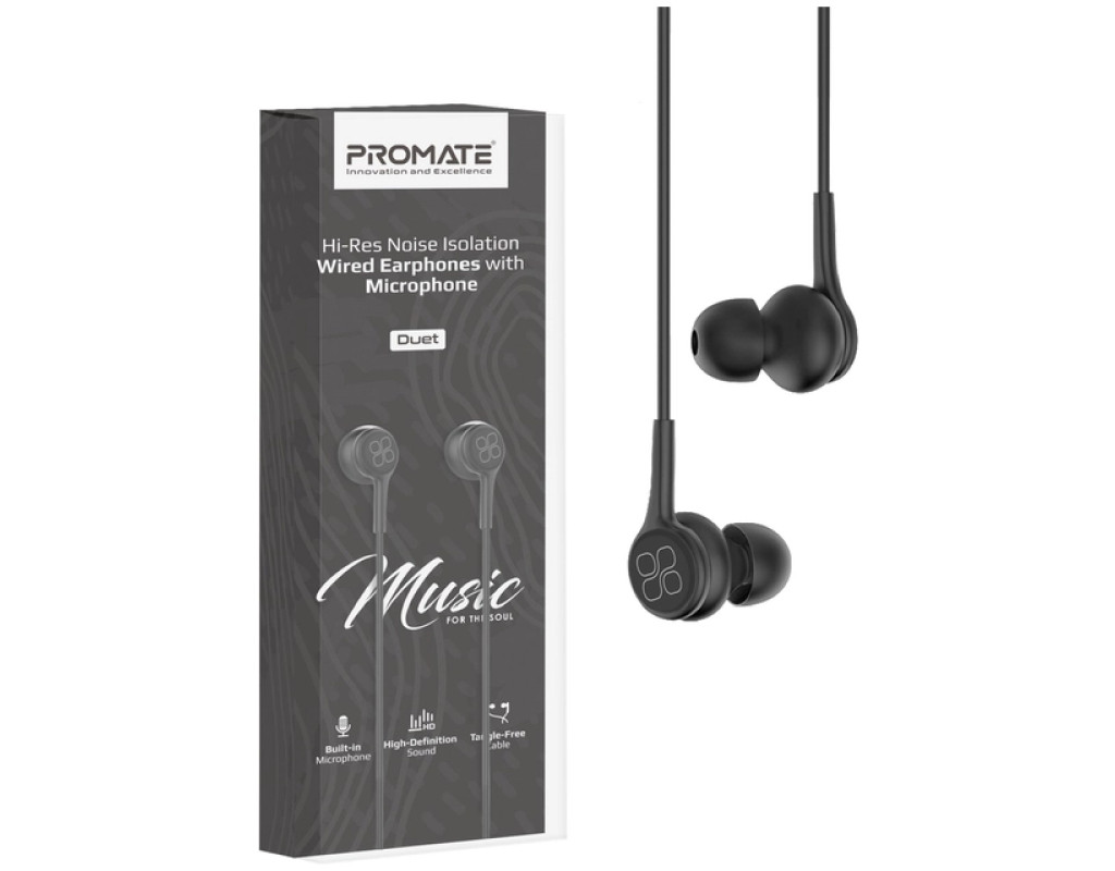 | Наушники Promate Duet Black (duet.black) завоевывают сердца пользователей не только изысканным дизайном, но и высоким качеством звука. Это замечательный аксессуар, который сочетает в себе стиль и функциональность. Наушники разработаны специально для тех, кто ценит чистый и насыщенный звук в компактном форм-факторе, и подходят для телефона и ноутбука. Отличный звук — это первое, что вы заметите, воспользовавшись Promate Duet. Благодаря 10-мм динамическим излучателям, наушники обеспечивают глубокое и сбалансированное звучание на всем диапазоне частот. Наслаждайтесь любимыми треками и подкастами, ощущая настоящее эмоциональное погружение в каждую музыкальную ноту. Одной из особенностей данной модели является пассивное шумоподавление. Вакуумные амбушюры, выполненные из мягкого силикона, надежно изолируют от посторонних звуков. Ни шум оживленных улиц, ни звуки транспорта не помешают вашему музыкальному наслаждению. Закрытое акустическое оформление помогает устранить лишние шумы, сосредоточив вас исключительно на музыке или важном звонке. Аналоговое подключение через Jack 3.5 мм позволяет быстро и легко соединяться с любым устройством, имеющим данный интерфейс. Это обеспечивает стабильное звучание без задержек, что важно для истинных ценителей качества. Наушники также оснащены встроенным микрофоном, который размещен на проводе. Это позволяет вам свободно отвечать на звонки благодаря удобной кнопке управления, размещенной также на проводе. Такая конструкция микрофона гарантирует, что ваши слова будут слышны четко и понятно. Эргономичный дизайн Promate Duet позволяет наушникам комфортно размещаться в ухе, обеспечивая максимально естественное и комфортное ношение в течение долгого времени. Легкие, всего 12 г, наушники не вызывают дискомфорта, а благодаря длине шнура в 1.2 метра, вы получите свободу движений без ограничений. Стильный вид – еще одно преимущество Promate Duet Black. Благодаря использованию софт-тач пластика и матового покрытия, наушники не только прочные и практичные, но и выглядят чрезвычайно элегантно, становясь прекрасным дополнением к вашему повседневному образу. Специально разработанные провода, не путающиеся, помогут сэкономить ваше время и сохранить нервы, так как больше не нужно тратить их на бесконечное распутывание проводов. Promate Duet Black является безупречным выбором для тех, кто ценит качество, комфорт и стиль в каждой детали. Это наушники, которые способны дарить радость каждый день, сопровождая вас в мире высококачественной музыки и звука. Выберите Promate Duet Black — и вы почувствуете разницу. |