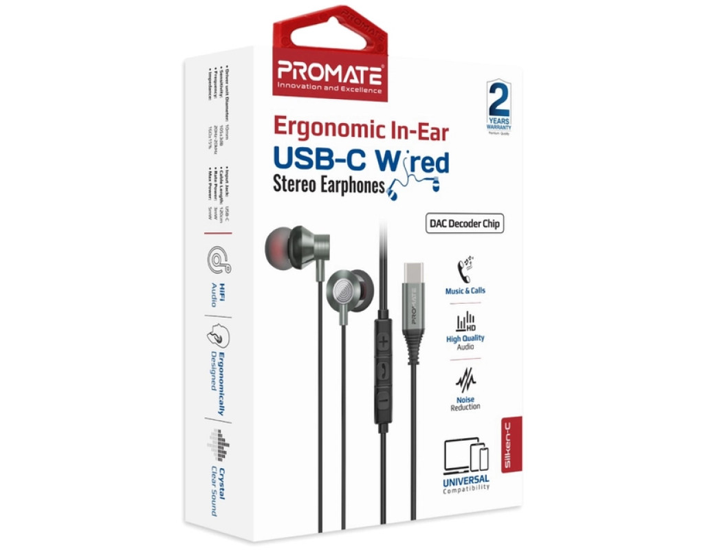 | Наушники Promate Silken-C Grey (silken-c.grey) - это идеальный выбор для тех, кто ценит первоклассное качество звука и комфорт при длительном ношении. Благодаря проводному подключению, вы можете наслаждаться стабильной передачей звука без задержек и помех. Особенность этой модели – вакуумная / внутрикопанная конструкция, обеспечивающая естественную изоляцию от лишнего шума и создающая эффект глубокого погружения в музыку. Наушники оснащены интерфейсом USB Type-C, что обеспечивает широкую совместимость с современными устройствами без использования дополнительных адаптеров. Благодаря закрытому акустическому оформлению и поддержке звука 2.0, Promate Silken-C создают сбалансированное, насыщенное звучание с выразительными басами благодаря динамическим излучателям диаметром 10 мм. Эргономичный дизайн - ещё одно из преимуществ этих наушников. Лёгкий вес в 15 г и силиконовые амбушюры обеспечивают комфортное ношение, а анатомически правильная форма идеально подходит к контурам уха, предотвращая чувство усталости даже после длительного использования. Длина шнура в 1.2 м позволяет беспрепятственно двигаться, не беспокоясь о его натяжении или запутывании. Благодаря встроенному HD микрофону с системой шумоподавления, Promate Silken-C гарантируют четкость передачи голоса во время звонков. Микрофон удачно расположен на проводе, что способствует лёгкости в использовании. Встроенный пульт с тремя кнопками позволяет удобно отвечать на вызовы, менять треки и регулировать громкость, обеспечивая максимальный контроль на расстоянии руки. Promate Silken-C также характеризуются пассивным шумоподавлением, которое эффективно защищает ваш слух от внешних шумов, предоставляя возможность полностью сосредоточиться на любимой музыке или важном разговоре. Наушники поставляются со специальными не запутывающимися проводами и чехлом для хранения, что делает их идеальными спутниками в путешествиях или при ежедневном использовании. Широкая совместимость с любыми устройствами, оснащёнными USB-C портом, делает их универсальным решением для каждого пользователя. С Promate Silken-C Grey вы получаете не просто наушники, а надёжного партнёра в мире качественного звучания и удобства. Они станут вашим неизменным спутником как дома, так и в дороге, даря истинное удовольствие от прослушивания музыки. |