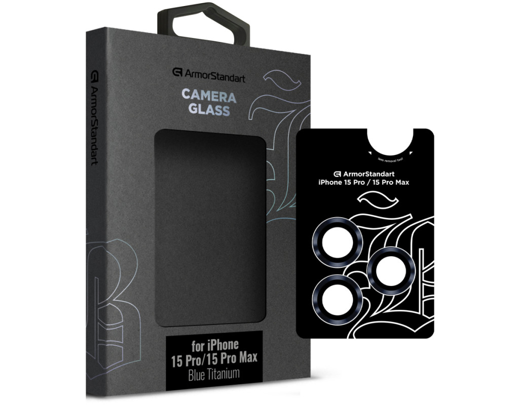 Стекло защитное Armorstandart Camera glass Supreme Black Icon iPhone 15 Pro/15 Pro Max Blue Titanium (ARM76594)