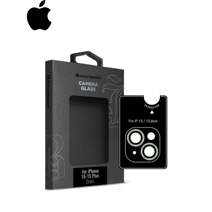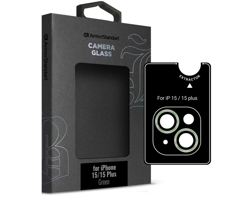 Стекло защитное Armorstandart Camera glass Supreme Black Icon iPhone 15/15 Plus Green (ARM76589)