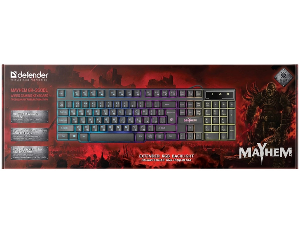 | Игровая клавиатура Defender Mayhem Mayhem GK-360DL USB UA Black (45362) станет вашим незаменимым спутником в виртуальном мире. Эта мультимедийная клавиатура, созданная специально для ПК, объединяет в себе множество функциональных возможностей для гейминга и повседневного использования. Её мембранная конструкция обеспечивает тихое и мягкое нажатие клавиш, что особенно важно в длительных игровых сессиях. Клавиатура оснащена расширенной RGB-подсветкой с чарующими радужными эффектами, которые позволяют настраивать атмосферу под настроение или игру. Символы и клавиши подсвечиваются, что упрощает использование её в темноте. Регулируемая яркость подсветки позволяет сохранять комфорт для ваших глаз в любых условиях освещения. Одно из ключевых преимуществ этой модели — возможность распознавания одновременного нажатия до 19 клавиш, что гарантирует точность и скорость в управлении во время интенсивной игры. Кроме того, есть специальные игровые функции, такие как блокировка системных клавиш Windows для предотвращения случайного выхода из игры, а также переключение стрелок курсора на кнопки WASD, что обеспечивает комфортное управление персонажем. Defender Mayhem GK-360DL поддерживает основные операционные системы (Windows, Mac OS, Linux), что делает эту клавиатуру универсальной. Её полноразмерный формат с раскладкой на трёх языках — русском, украинском и английском — удовлетворит потребности любого пользователя. Дополнительными преимуществами являются водостойкая конструкция и возможность регулирования угла наклона клавиатуры с помощью выдвижных ножек, что обеспечивает оптимальный комфорт во время работы или игры. Увеличенная площадь клавиш-модификаторов, таких как Ctrl, Shift, Enter и BackSpace, делает их использование ещё удобнее. Встроенные горячие клавиши для быстрого доступа к офисным, мультимедийным и интернет-приложениям станут верным помощником в любой деятельности. Эта клавиатура станет идеальным выбором для тех, кто ценит качественное исполнение, современный дизайн и широкий функционал, который предоставляет дополнительное преимущество в любой ситуации. Defender Mayhem Mayhem GK-360DL — это ваш ключ к миру высоких технологий и ярких впечатлений. |