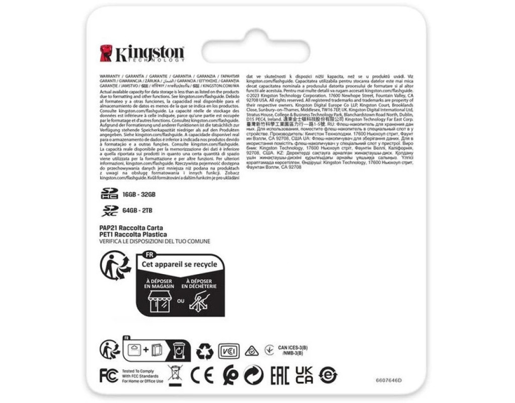 | Карта памяти Kingston 512GB SDXC class 10 UHS-II U3 Canvas React Plus (SDR2V6/512GB) — это уникальное решение для тех, кто ценит качество и скорость. С объёмом в 512 ГБ вы сможете хранить огромное количество фото и видео без компромиссов относительно качества. Поддержка стандарта UHS-II U3 гарантирует невероятную скорость записи до 150 МБ/с, что делает эту карту идеальным выбором для съёмки в 4K и реализации ваших творческих идей. Скорость чтения до 280 МБ/с превращает перенос файлов в мгновение, что значительно облегчает и ускоряет вашу работу над проектами. Интерфейс exFAT обеспечивает совместимость с различными устройствами, делая эту карту универсальным инструментом. Выдерживая температуры от -25 до +85 °C, она надёжно работает в любых экстремальных условиях. Компактные размеры 24 x 32 x 2.1 мм и рабочее напряжение 3.3 В подчёркивают надёжность и высокую производительность, что делает её идеальным выбором для профессиональных фотографов и видеооператоров. |