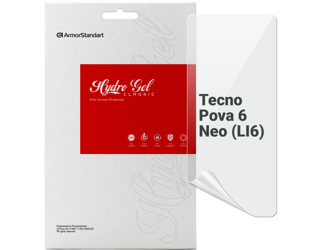 Назначение - для телефона, Вид покрытия - защитное, гидрогелевая, Совместимость с моделями - Tecno POVA 6 Neo, Количество в упаковке - 1 шт