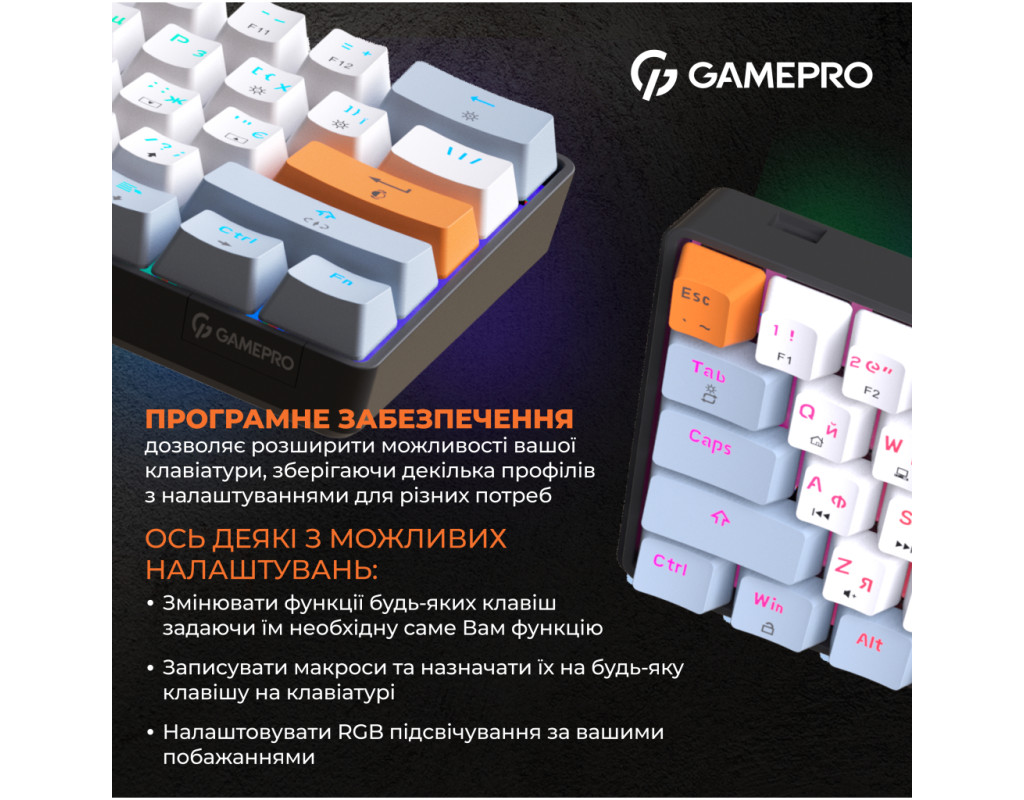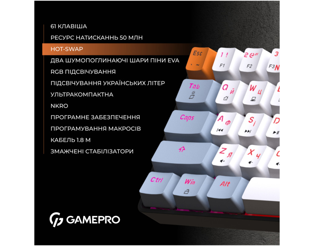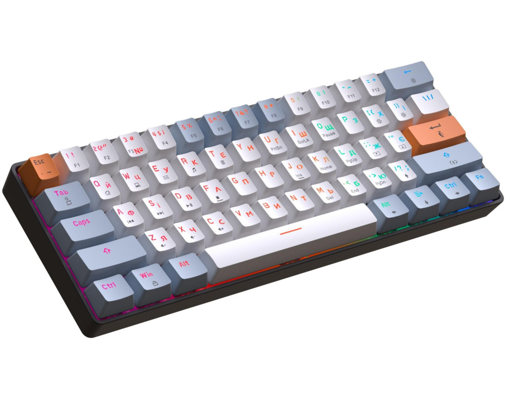 | Клавиатура GamePro MK130R Hot-Swap Red Switch RGB USB UA Black (MK130R) - это идеальный выбор для тех, кто ценит не только эстетику, но и функциональность. Благодаря ультракомпактному форм-фактору 60%, клавиатура не только экономит рабочее пространство, но и позволяет с легкостью выполнять все необходимые задачи с помощью комбинаций клавиш. Её стильный черный корпус в сочетании с белыми и серыми кейкапами придает вашему рабочему месту индивидуальности и элегантности. Механическая конструкция клавиатуры, обеспеченная переключателями типа Outemu Red, делает опыт пользования по-настоящему приятным. Эти линейные переключатели отличаются своей тихой и плавной работой, а их ресурс в 50 миллионов нажатий гарантирует длительный срок службы. Благодаря специальной конструкции с двумя слоями пены EVA, которая поглощает шум, каждое нажатие сопровождается мягким и удовлетворительным звуком. Одна из самых привлекательных функций этой клавиатуры – система Hot-Swap, которая позволяет пользователям легко менять переключатели без необходимости в пайке. Это открывает множество возможностей для персонализации, позволяя настроить клавиатуру под свои предпочтения. Современная RGB-подсветка придает клавиатуре возможность менять цвета и режимы, которые настраиваются с помощью программного обеспечения или через комбинации клавиш. Вы можете выбрать из множества режимов, регулировать яркость и скорость эффектов – всё это для создания идеальной атмосферы на рабочем месте. Программируемые клавиши расширяют функциональные возможности, позволяя назначать любые действия или макросы, что является огромным плюсом для геймеров и профессионалов. С частотой опроса до 1000 Гц, клавиатура обеспечивает мгновенную реакцию без задержек. Удобство при подключении гарантирует съемный Type-C кабель длиной 1.8 метра. Он легко подключается к разнообразным устройствам, что добавляет универсальности в использовании. Клавиатура полностью совместима с операционными системами Windows 7, 8, 10, 11, и Linux, что делает её универсальным выбором для любого пользователя. Комплектация MK130R дополнительно включает два запасных переключателя, пуллер для кейкапов и переключателей, и набор дополнительных кейкапов, что повышает возможности персонализации вашего устройства. Выбирая GamePro MK130R, вы получаете не просто клавиатуру, а надежного партнера для работы или игры, который всегда будет с вами на шаг впереди. |