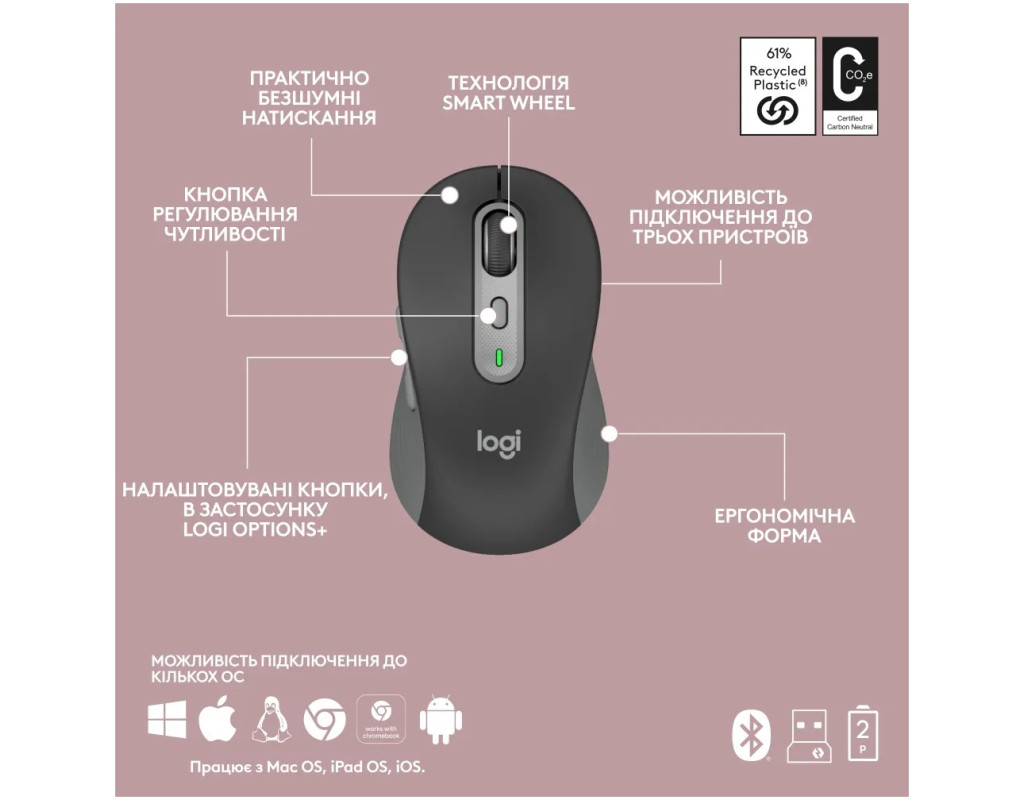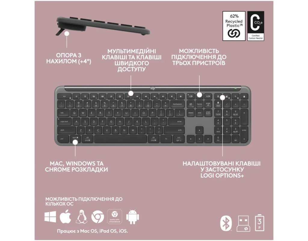 Logitech MK950 – это надежное и эргономичное решение для повседневного использования. Клавиатура имеет удобное полноразмерное расположение клавиш, включая цифровую клавиатуру, что делает ее удобной для работы и игр. Мышь в комплекте оборудована высокоточным оптическим датчиком, обеспечивающим плавное и точное движение курсора. Комплект использует надежное беспроводное соединение с компьютером, что позволяет избежать проводов, упрощая рабочее пространство и обеспечивая свободу движения. Типы подключения: приемник USB Logi Bolt, Bluetooth Low Energy (Bluetooth 5.1). |