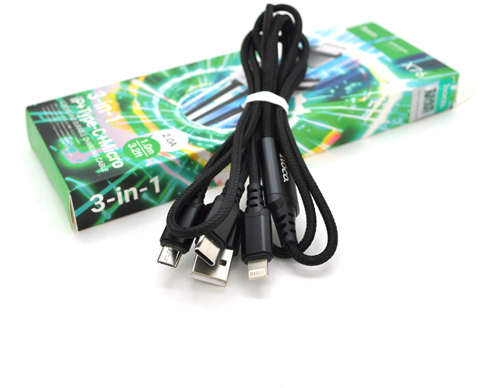 | Опис: Кабель HOCO X76 USB-1 3 в 1 Micro / Iphone / Type-C має довжину 1м і має чорний колір. Він поставляється у зручній упаковці. Характеристики: - Тип: 3 в 1 (Micro / Iphone / Type-C) - Швидкість заряджання: 2A - Довжина: 1м - Колір чорний - Упаковка: коробка |