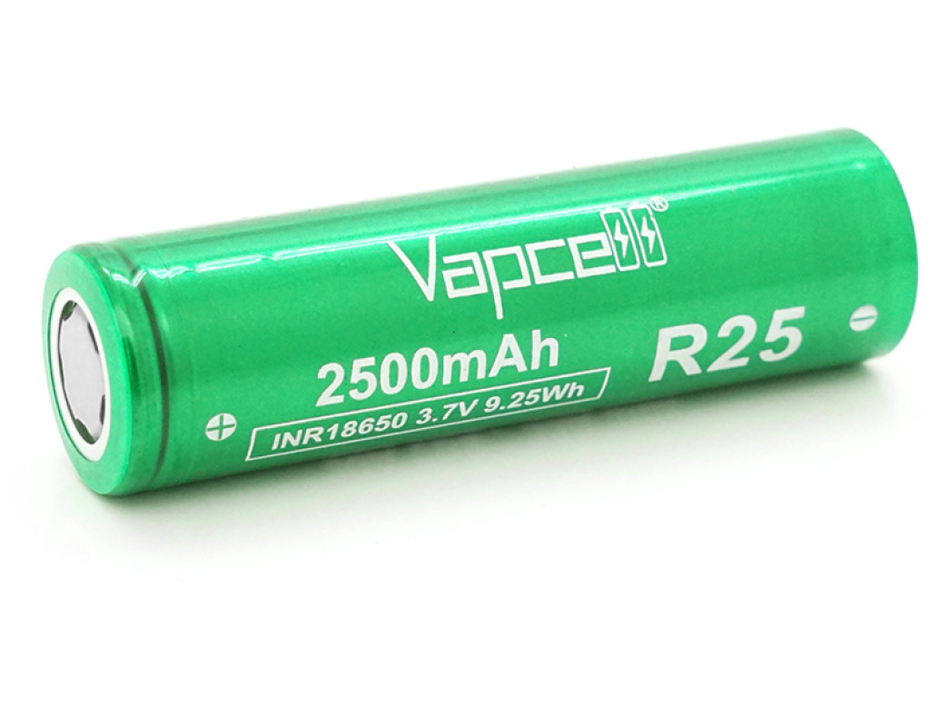 | Акумулятор 18650 Li-Ion Vapcell INR18650 R25, 2500mAh, 20A, 4.2 / 3.6 / 2.5V, Green |