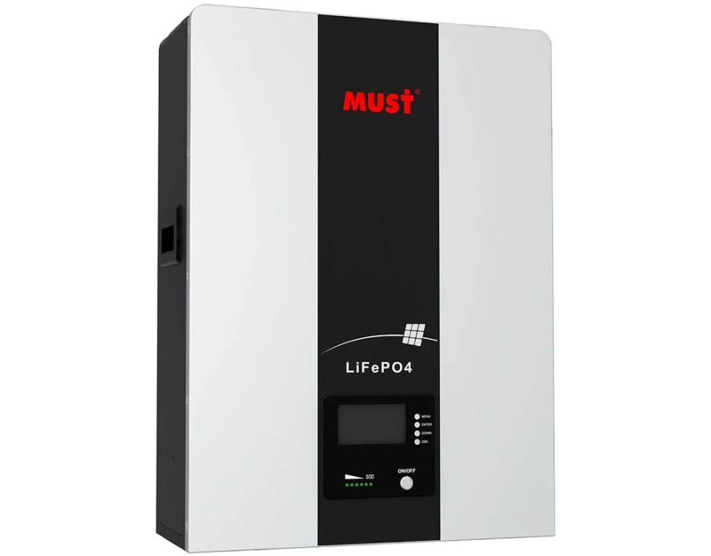 Литиевый аккумулятор Must LiFePO4 48V 100Ah – это вид литий-ионного аккумулятора, у которого катод изготовлен из литий-железо-фосфата. Аккумуляторы LiFePO4 являются идеальной заменой традиционных свинцово-кислотных аккумуляторов, предлагая быстрое решение для замены свинцово-кислотных аккумуляторов. Аккумуляторы MUST можно использовать отдельно или соединять последовательно или параллельно для создания большей системы. Литий-железо-фосфатные батареи или глубокого цикла LiFePO4 являются еще одной альтернативой свинцово-кислотным батареям или батареям глубокого цикла AGM. Литий-железо-фосфат (батарея LiFePO4) может использоваться в большинстве приложений, в которых используются свинцово-кислотные, гелевые или AGM-батареи. Литиевый аккумулятор Must LiFePO4 48V 100Ah – один из самых надежных способов накопления энергии, представленных на рынке Украины. Этот аккумулятор можно использовать для поддержки энергообеспечения различных видов оборудования и систем. Модель Must LiFePO4 48V 100Ah особенно подходит для использования в условиях ограниченного пространства благодаря своим компактным размерам. Эту аккумуляторную батарею рекомендуется использовать в автономных системах, где нет подключения к внешней сети – она выдерживает глубокие разряды до 90%. Литиевый аккумулятор Must LiFePO4 48V 100Ah имеет встроенную систему управления аккумулятором BMS. Она контролирует состояние заряда, напряжение, ток и температуру отдельных ячеек. Более того, Battery Manegment System балансирует зарядный ток между ячейками для продления срока службы аккумулятора. Для того чтобы увеличить возможности системы (увеличить емкость) можно подключить несколько батарей параллельно. Таким образом, вы увеличите время автономной работы вашего дома. Аккумуляторная батарея литий-железо-фосфатного типа Литиевый аккумулятор Must LiFePO4 48V 100Ah характеризуется глубокой емкостью, длительным сроком эксплуатации, большим количеством циклов заряда-разряда и современным практичным дизайном, в каждом модуле установлена система управления батареями. Будет отличным вариантом для установки в автономных или гибридных солнечных электростанций, отлично работает с большинством инверторов на современном рынке. Имеет систему управления батареями (BMS), установленную в каждом модуле, и, следовательно, обеспечивает большую безопасность. Таким образом, внутренние элементы контролируются и уравновешиваются от перенапряжения, переразряда перегрева и т.д. Особенности: